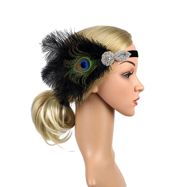 古典的な欧米の孔雀の羽の髪飾りの宴会の舞踏会のインディアンの羽のヘッドバンド1920sの頭飾り