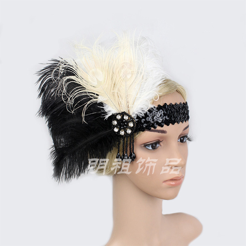 外国貿易のヘアバンドのヘッドウェアの欧米の名媛の宴会のハロウィンのヘッドバンドのスパンコールのダイヤモンドの羽のヘッドバンド