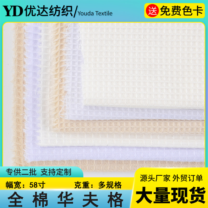 工場の現物は全綿21本の単双股の全綿のワッフルの蜂の巣の布のワッフルのパジャマの部屋の服の生地です。