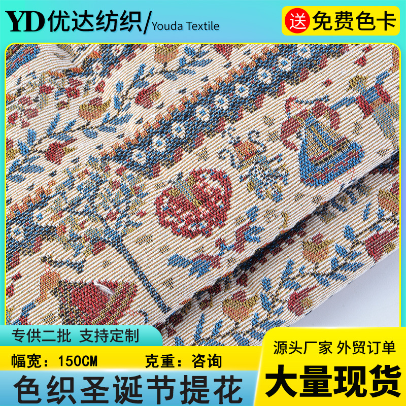 現物卸売り色織りクリスマスジャカード布家庭用バッグバッグレジ袋ポリエステル綿ジャカード生地