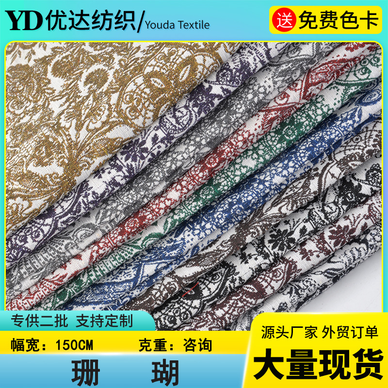 サンゴ模様ジャカード布現物植物模様色織布厚手テーブルクロス抱き枕手袋生地
