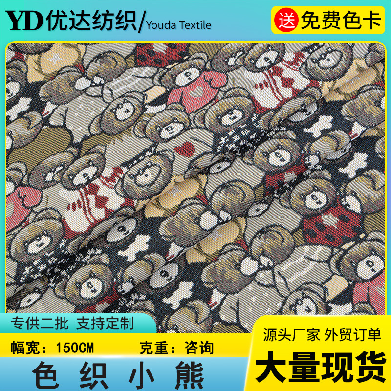 メーカー大量現物パンダ模様色織布平織りポリエステル綿色織熊群ジャカード生地