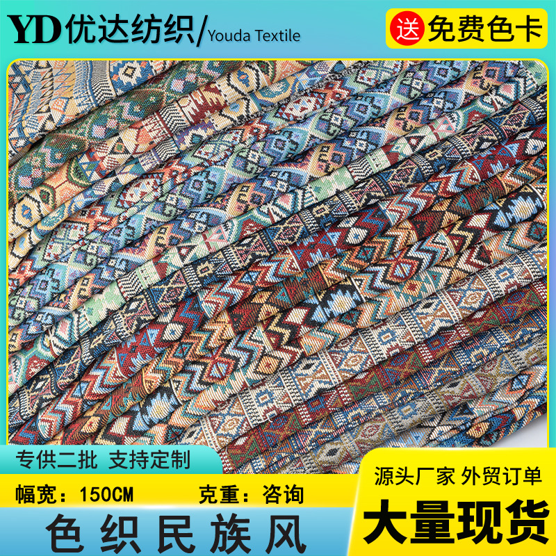色織民族ブロック田園油絵風民族風色織ジャカード生地テーブルクロステーブルクロスソファ生地