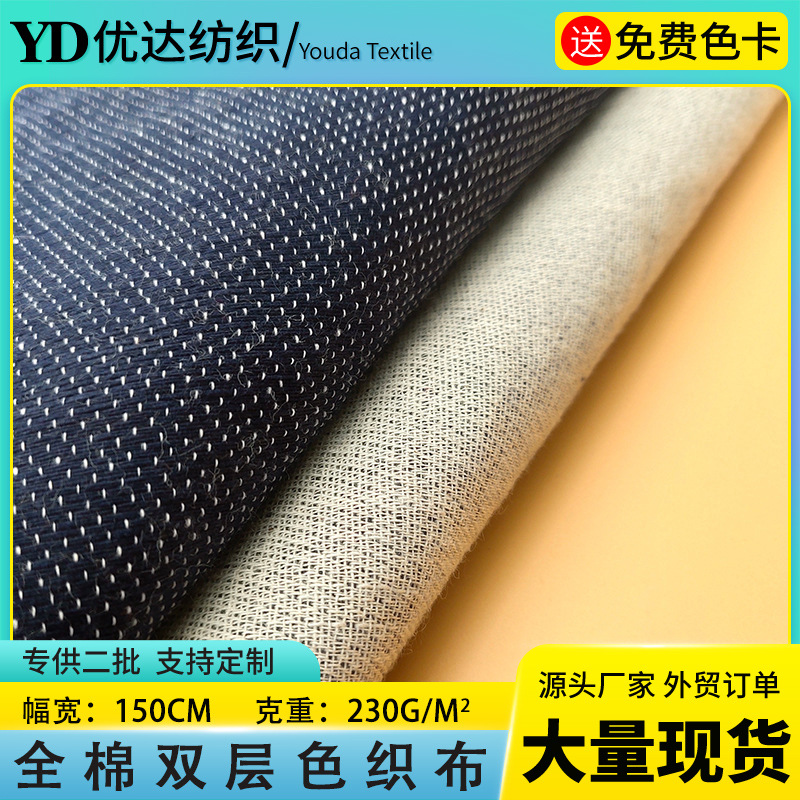 現物卸売り綿二重色織布青白色バッグ手袋靴材家紡織カーテン平織り生地