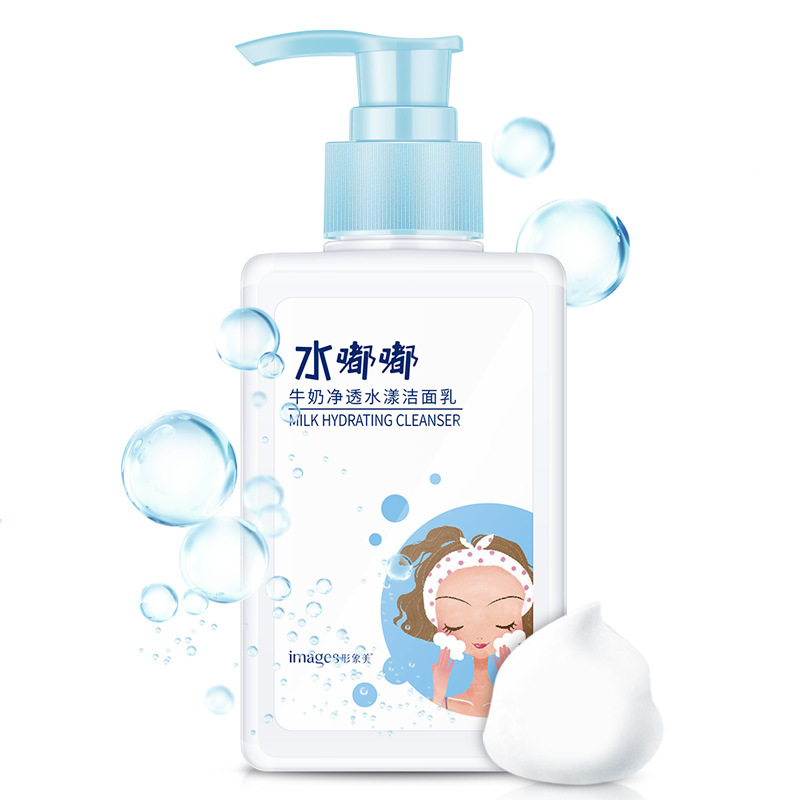イメージの美しい牛乳の透き通った水が洗顔料にあふれています。