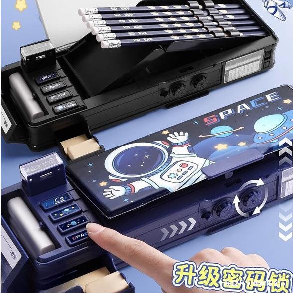 パスワードロック文具箱指紋パスワードロック解除ハイテク男の子ペンボックス男の子と子供多機能秘密付き
