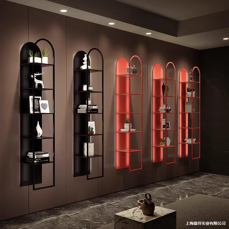 錬鉄製収納ラック、壁掛け収納ラック、発光ランプ、パーティションラック、ウォールキャビネット、本棚、軽量高級棚ディスプレイキャビネット