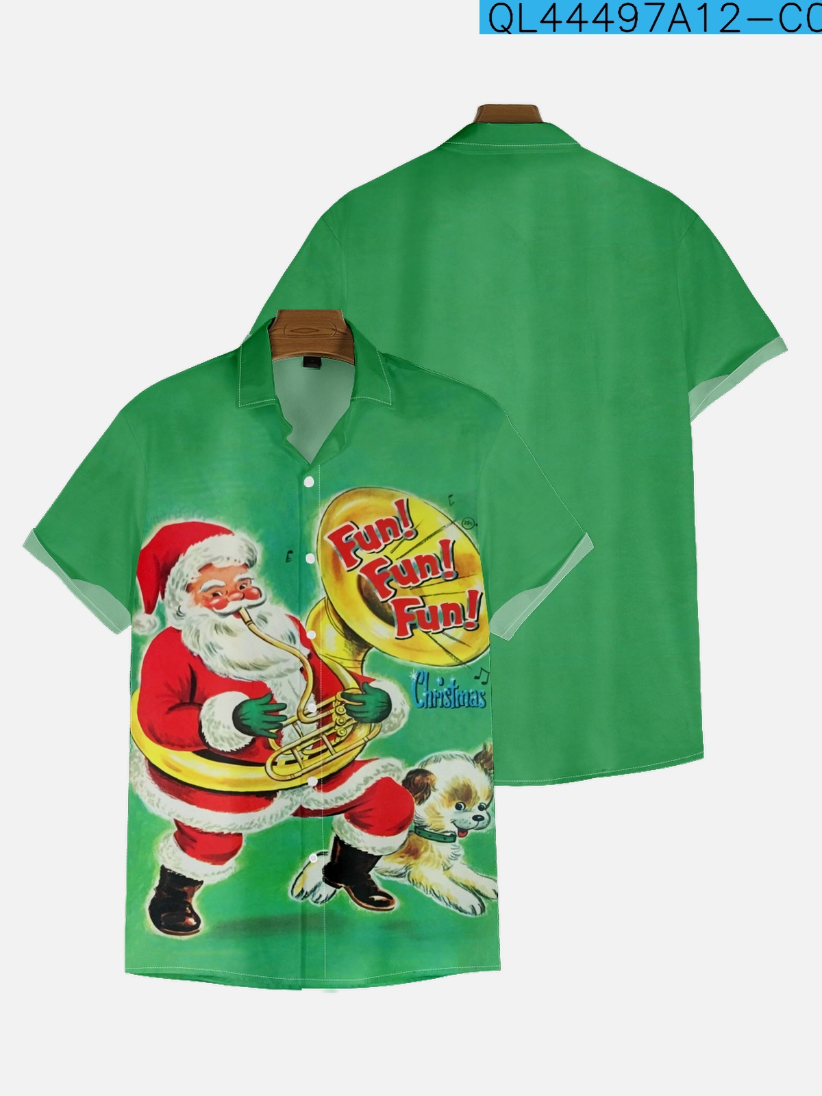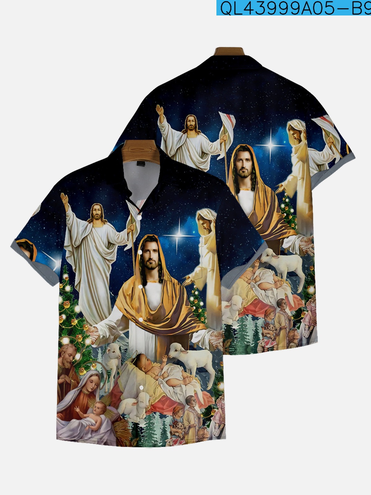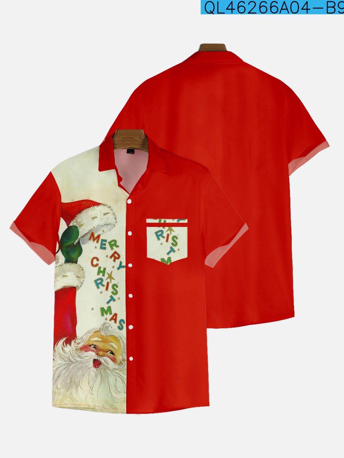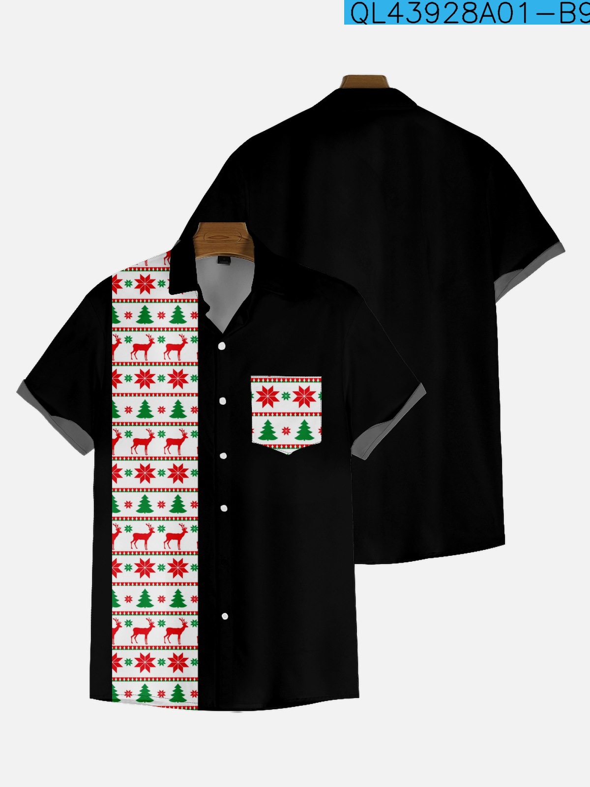 2022新型クロスボーダー大サイズシャツ10-27クリスマスシリーズ男性のゆったりしたファッション半袖襟付きシャツ