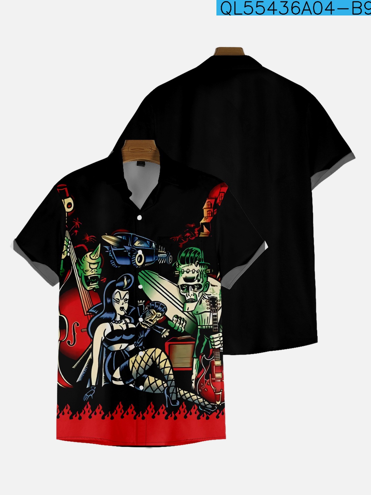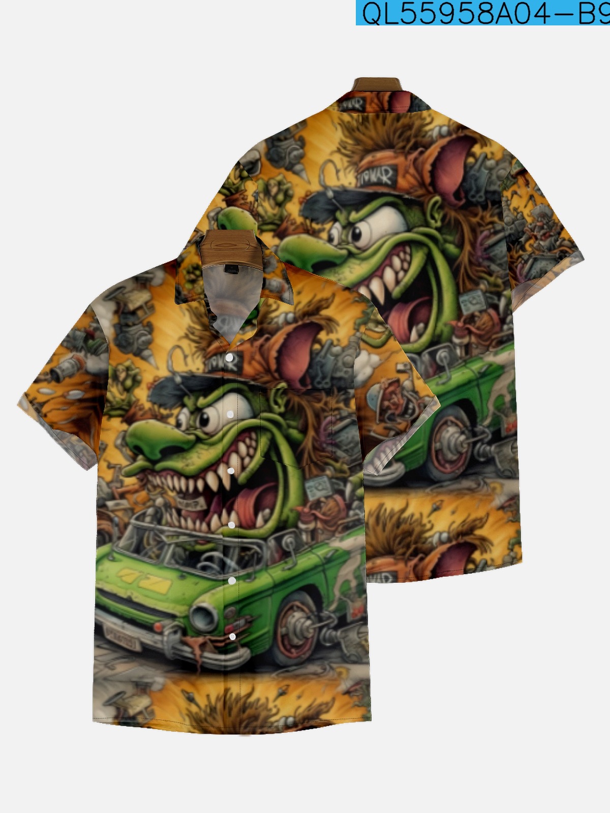 2022新型越境大サイズシャツ11-29創意プリント男性のゆったりしたファッション半袖襟付きシャツ