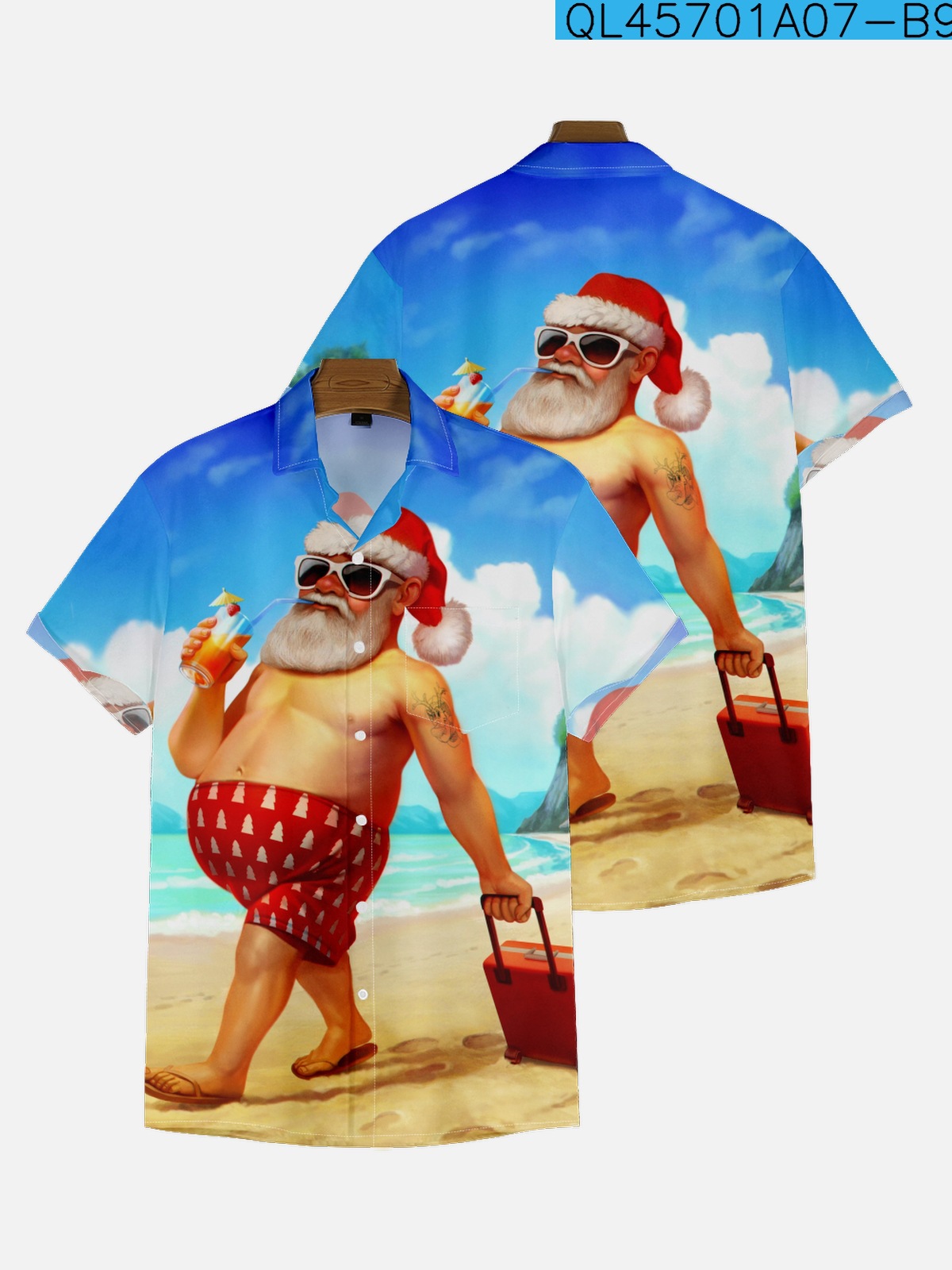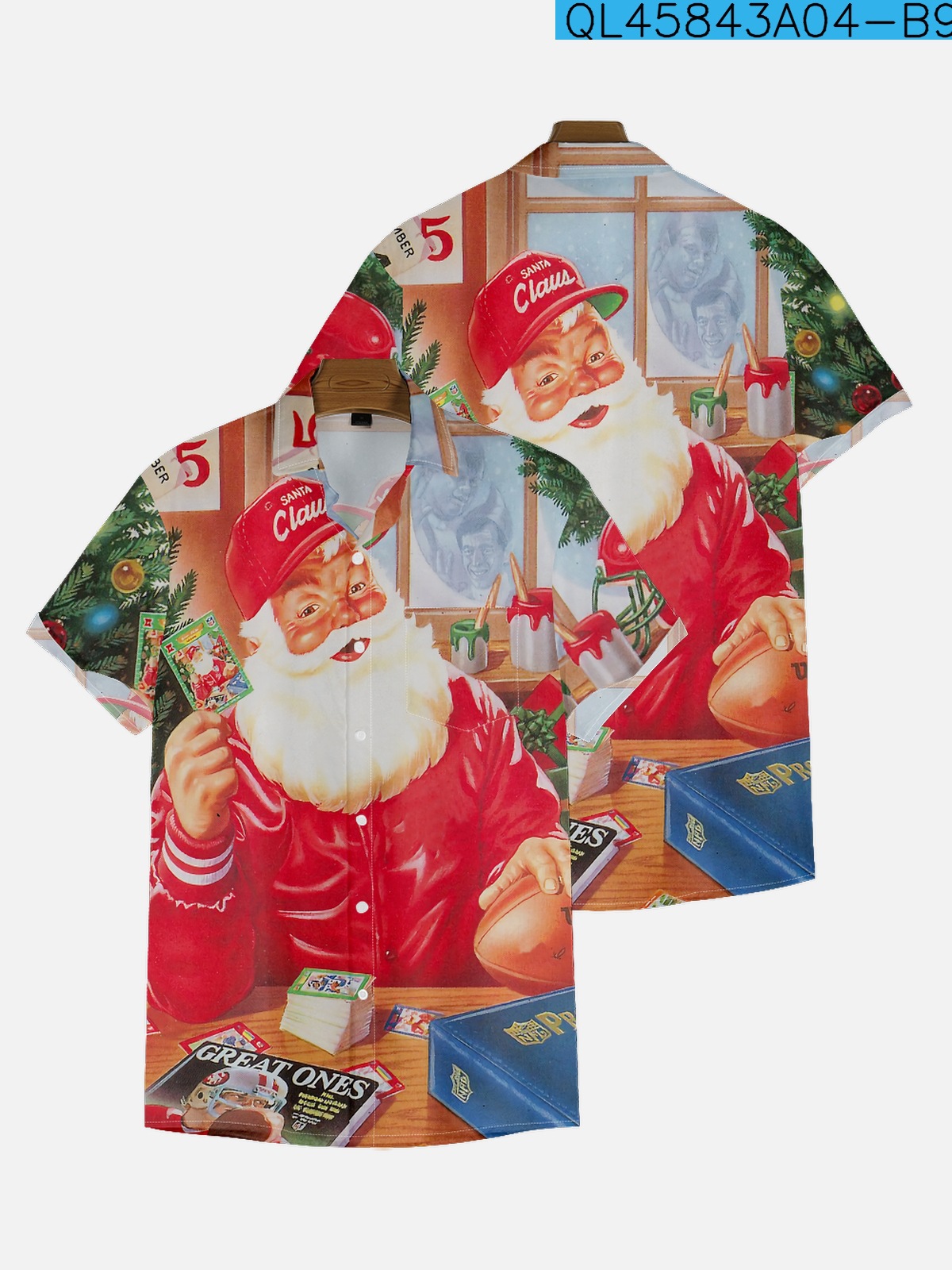 2022新型クロスボーダー大サイズシャツ9-20クリスマスプリント男性のゆるいトレンド半袖襟付きシャツ