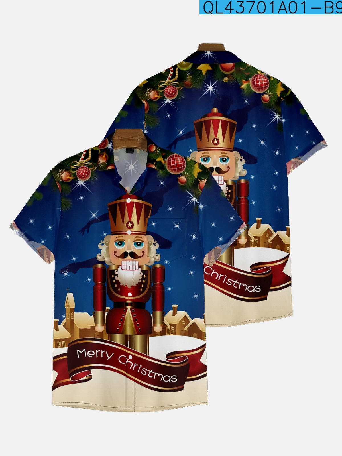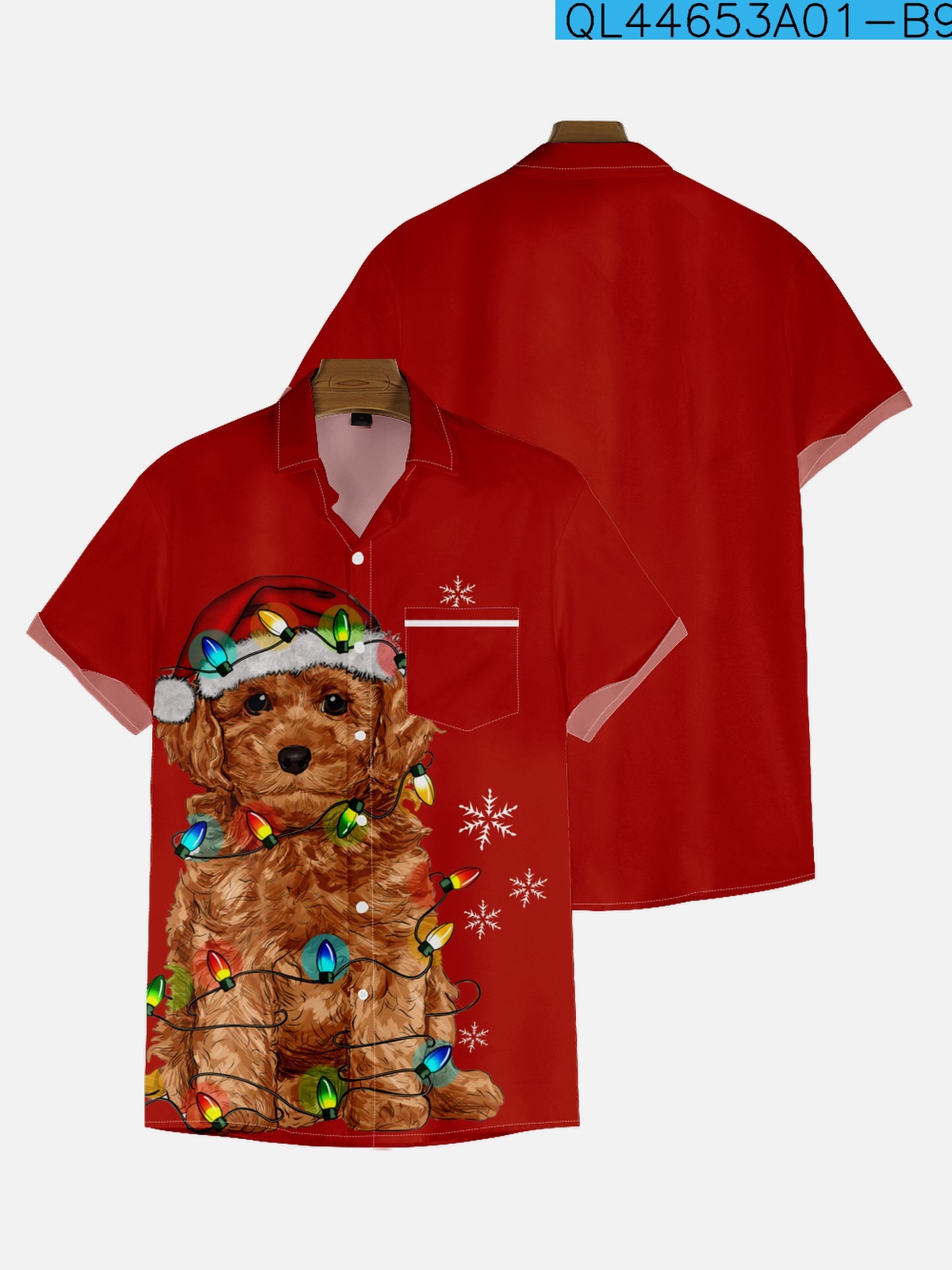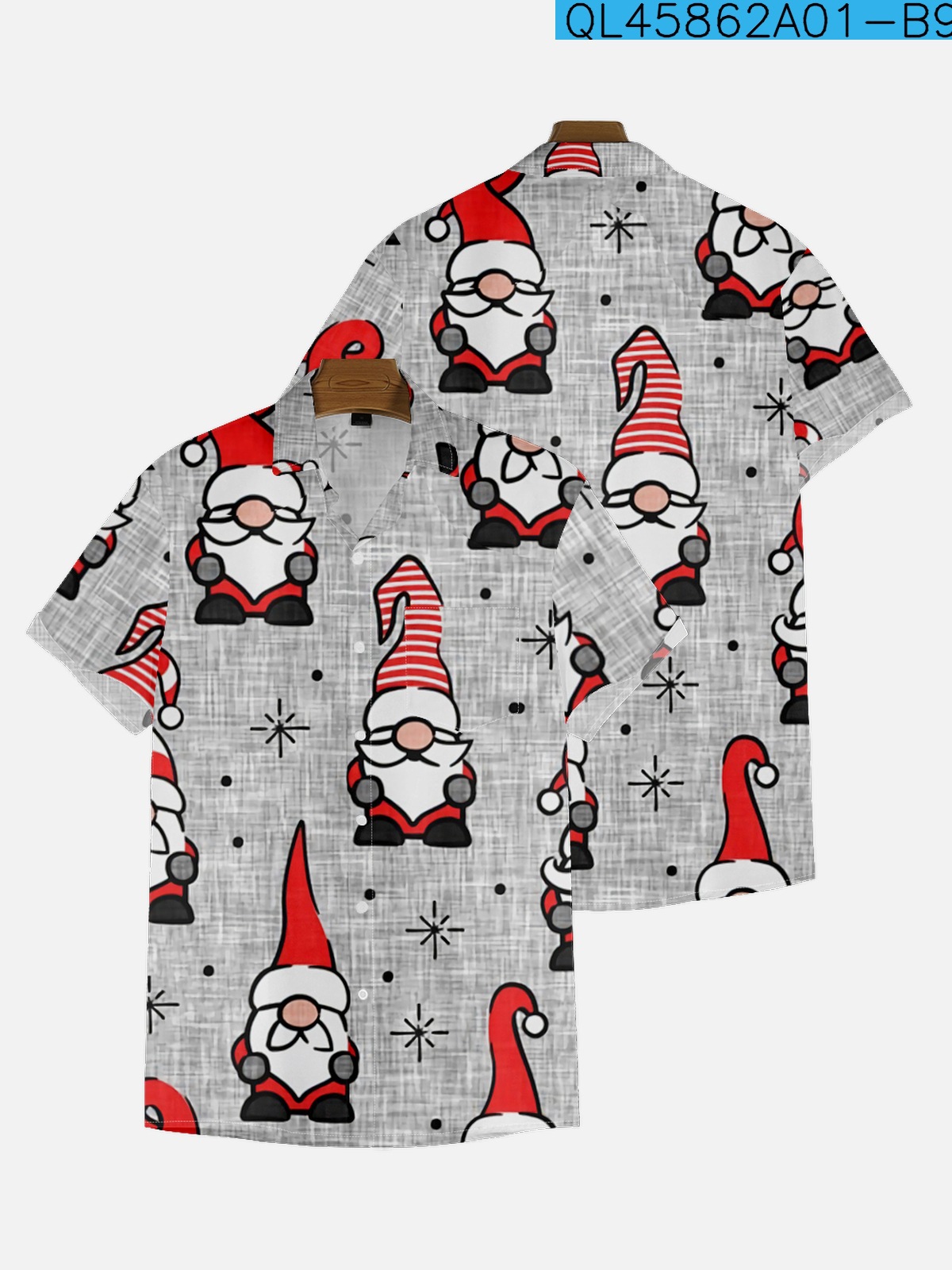 2022新型クロスボーダー大サイズシャツ10-17クリスマスプリント男性のゆるいトレンド半袖襟付きシャツ