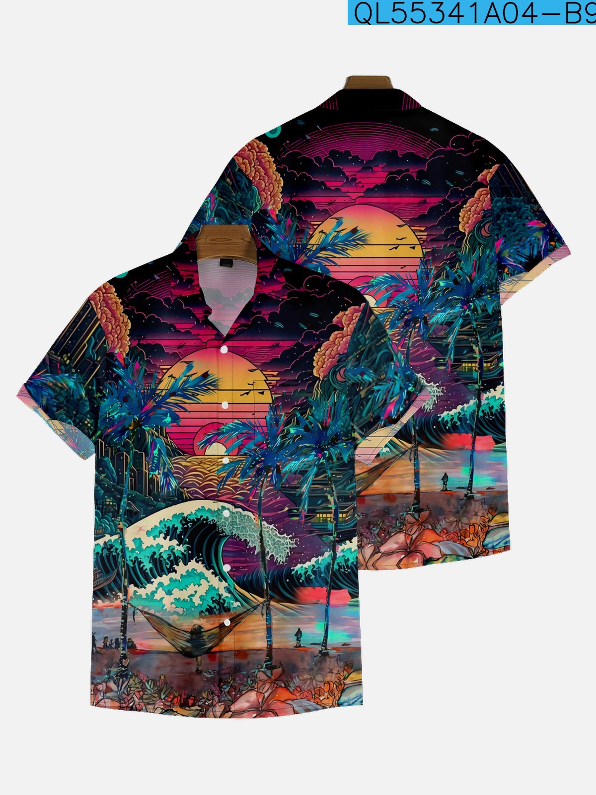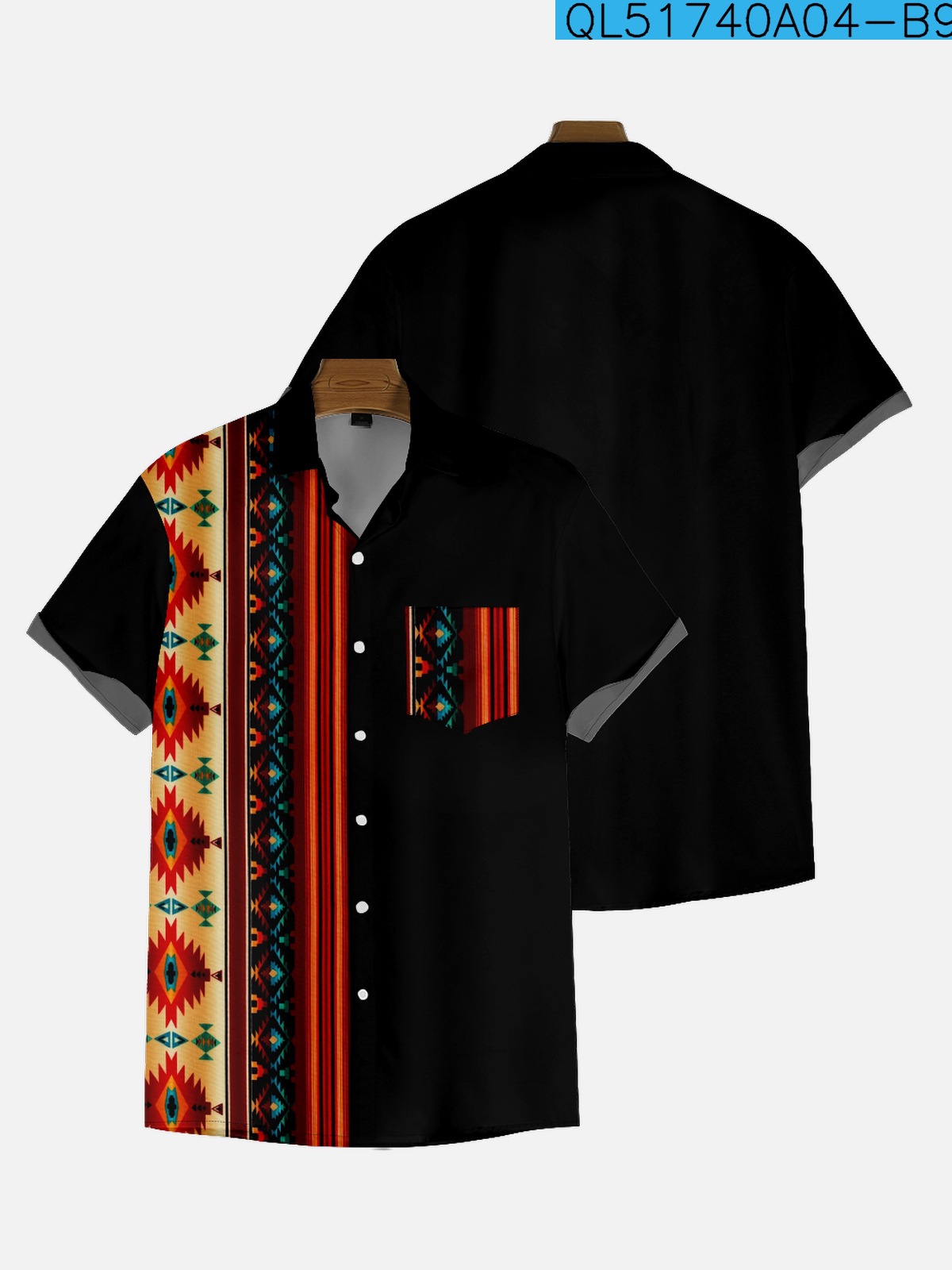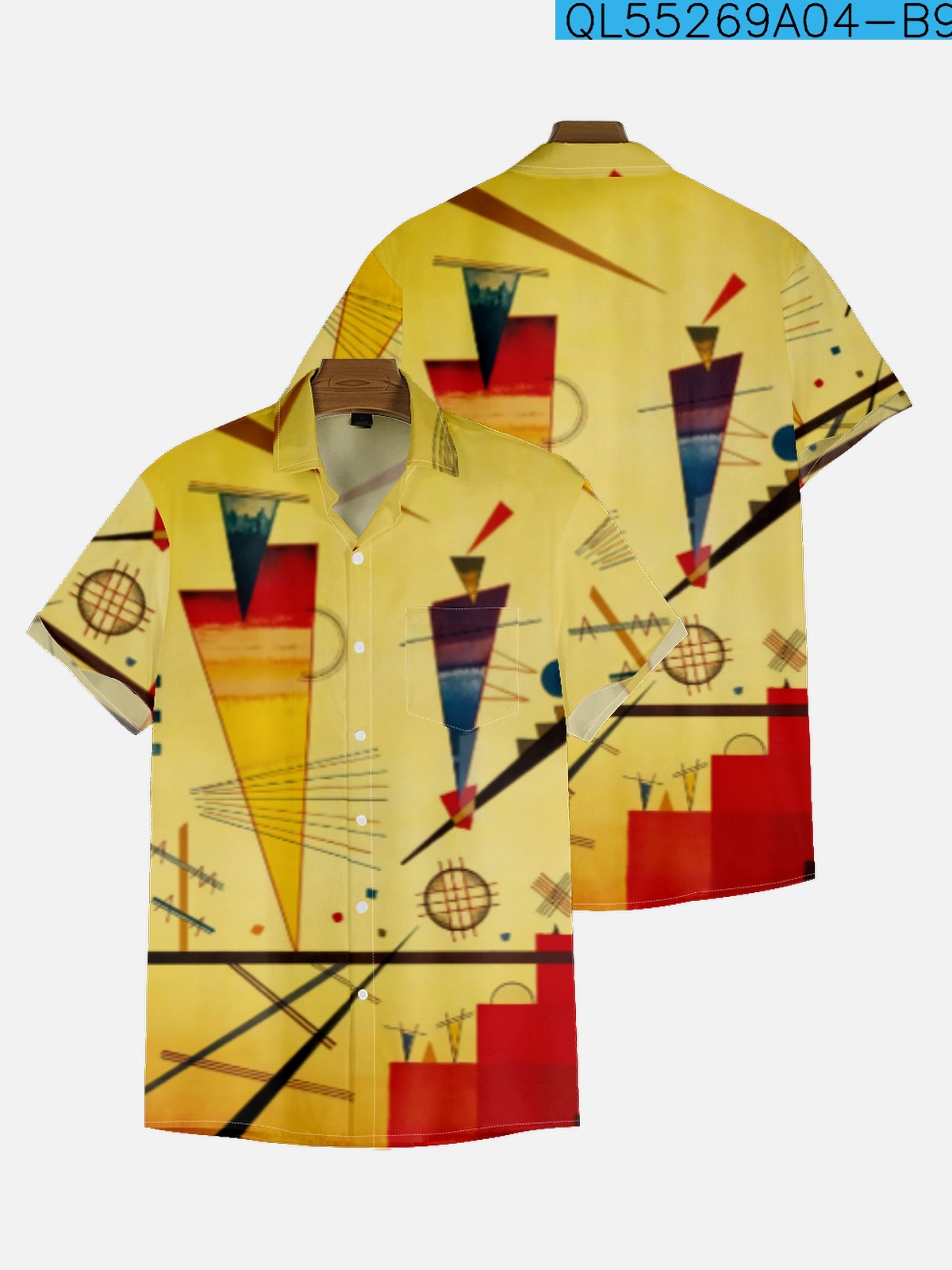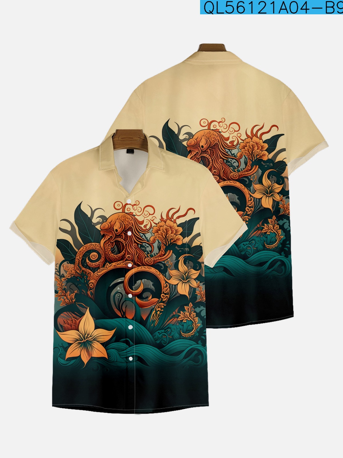 2022新型クロスボーダー大サイズシャツ12-4創意プリント男性のゆったりしたファッション半袖襟付きシャツ