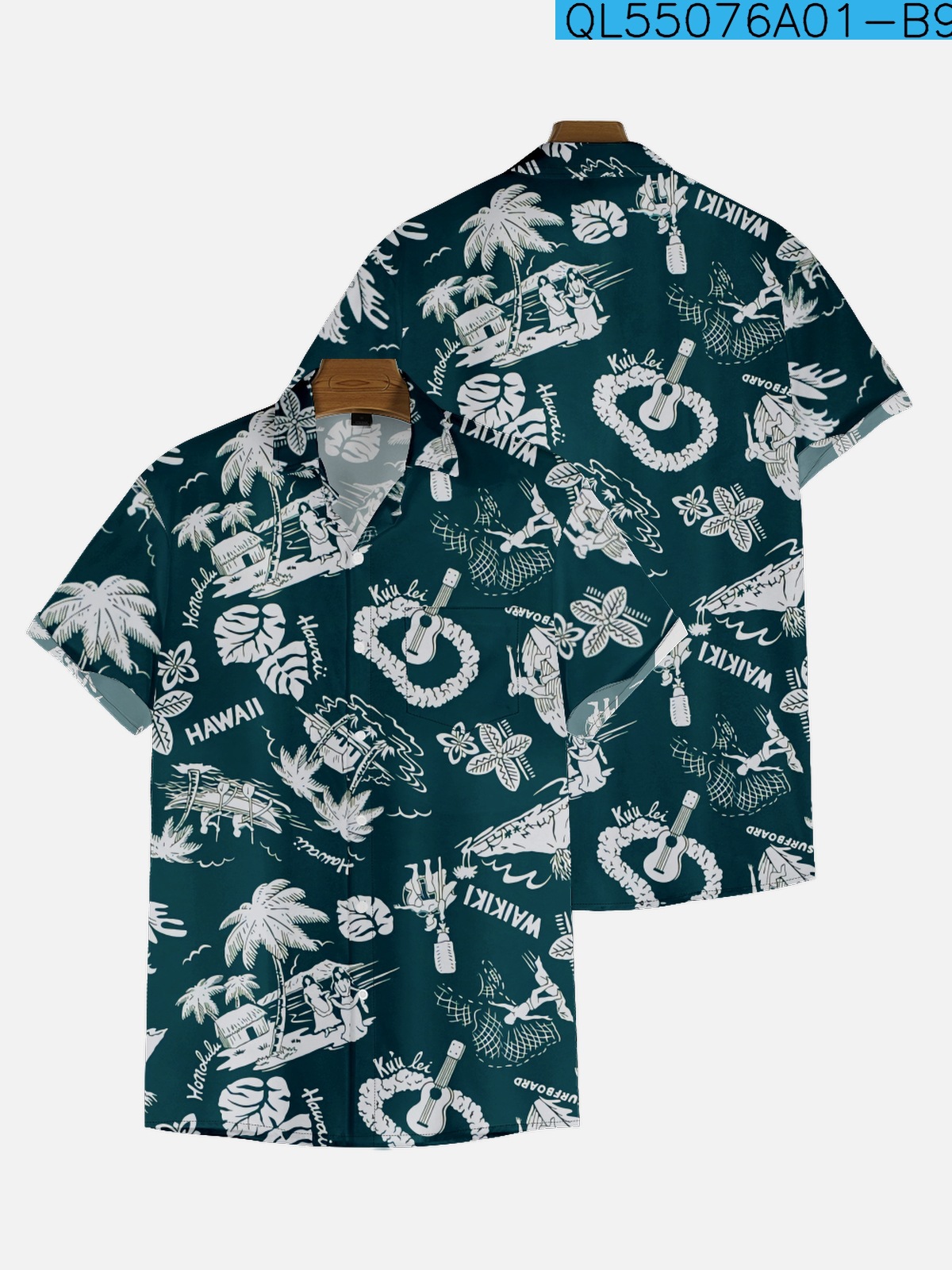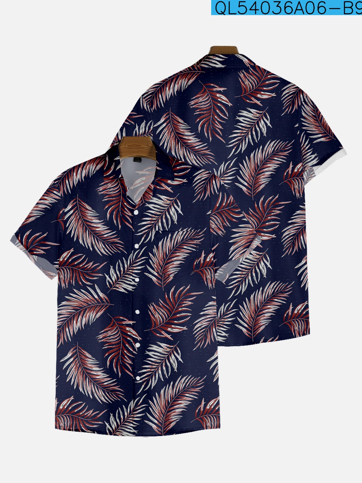 2022新型クロスボーダー大サイズシャツ12-30プリント男性のゆったりしたファッション半袖襟付きシャツ
