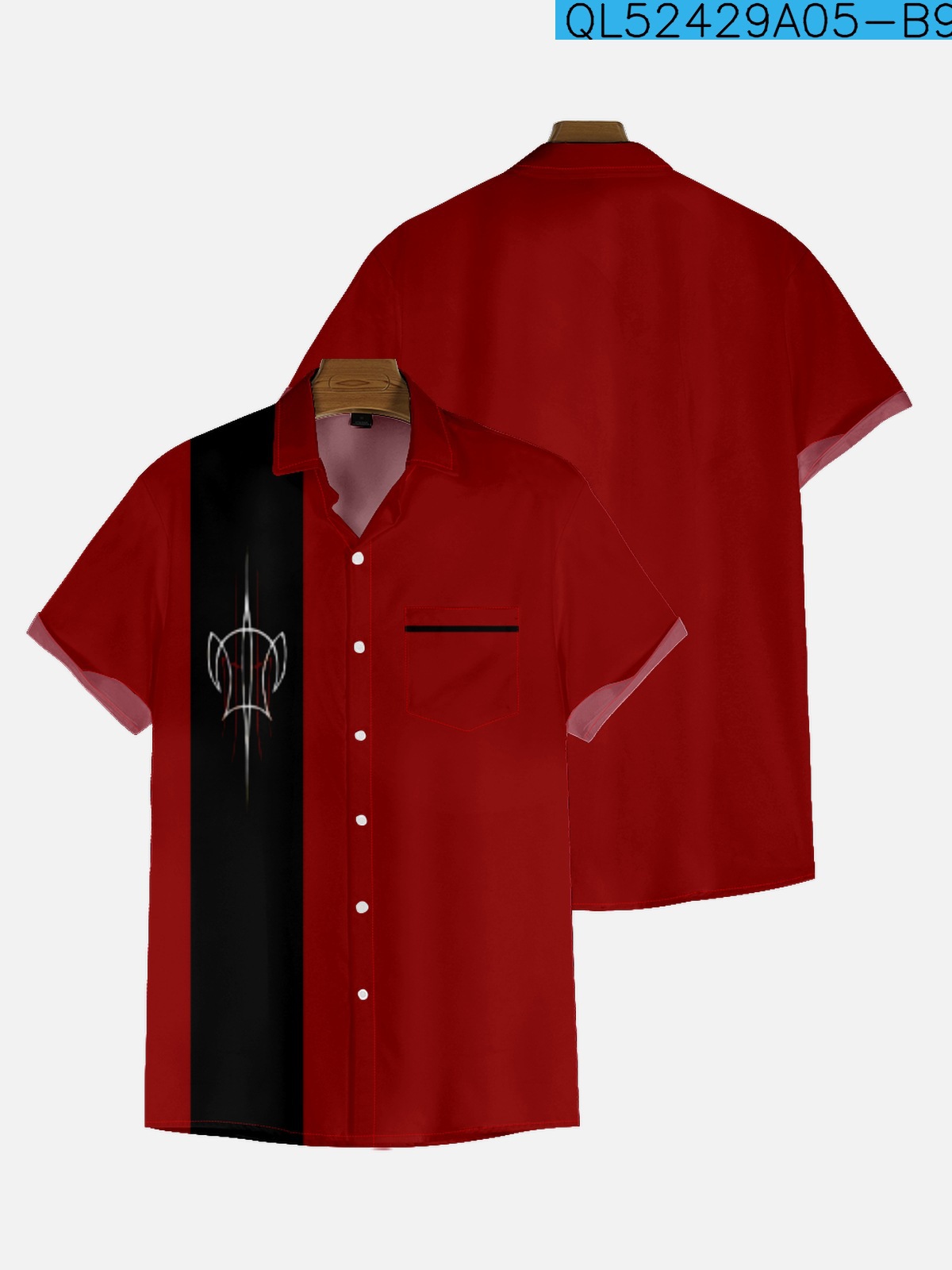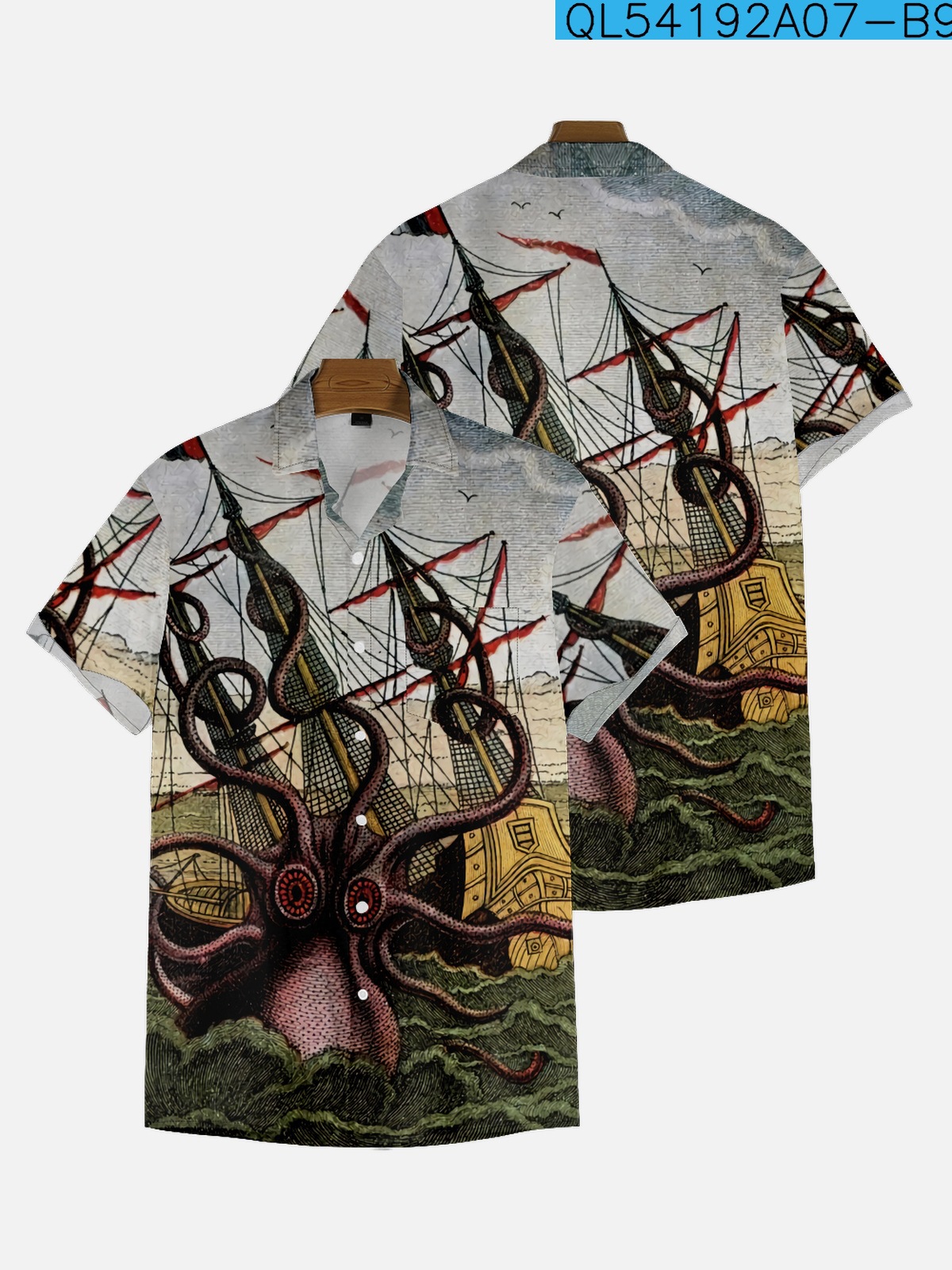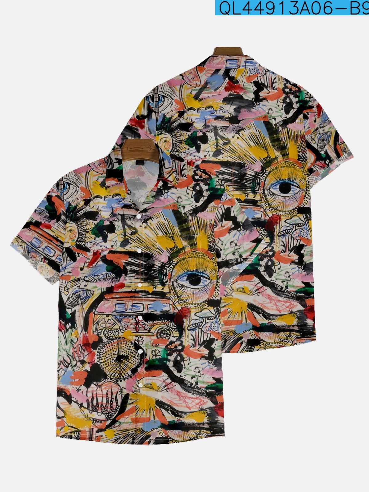 2022新型越境大サイズシャツ11-2創意プリント男性のゆったりしたファッション半袖襟付きシャツ