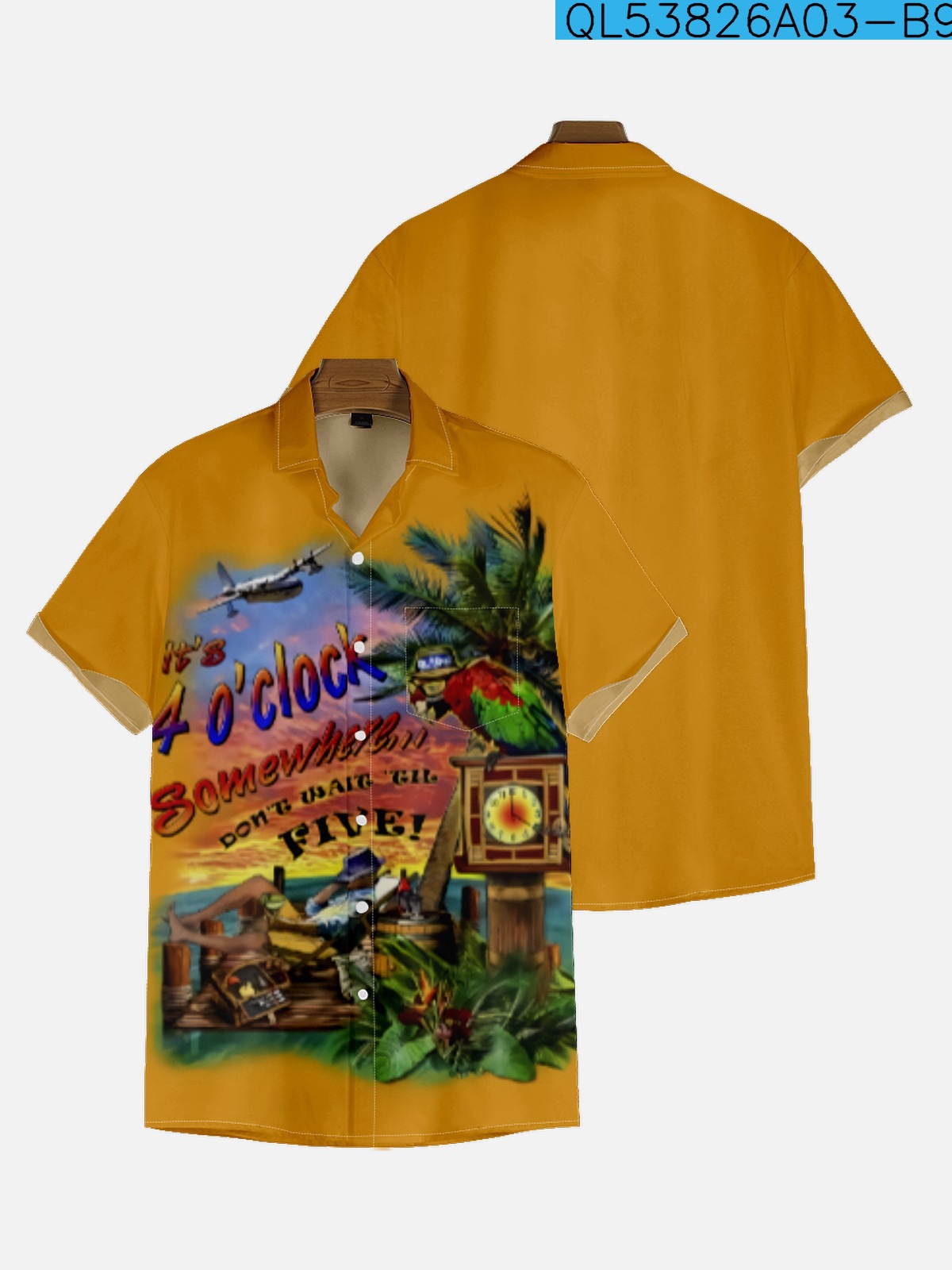 2022新型越境大サイズシャツ11-11創意プリント男性のゆったりしたファッション半袖襟付きシャツ