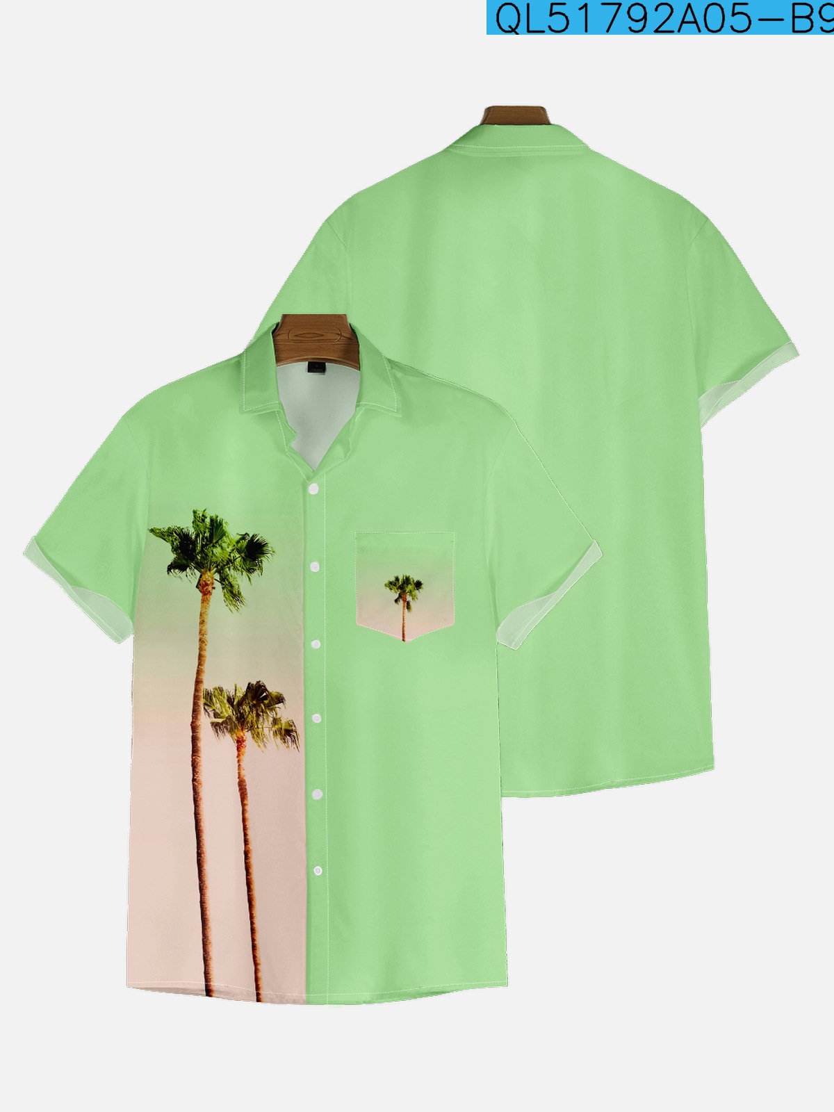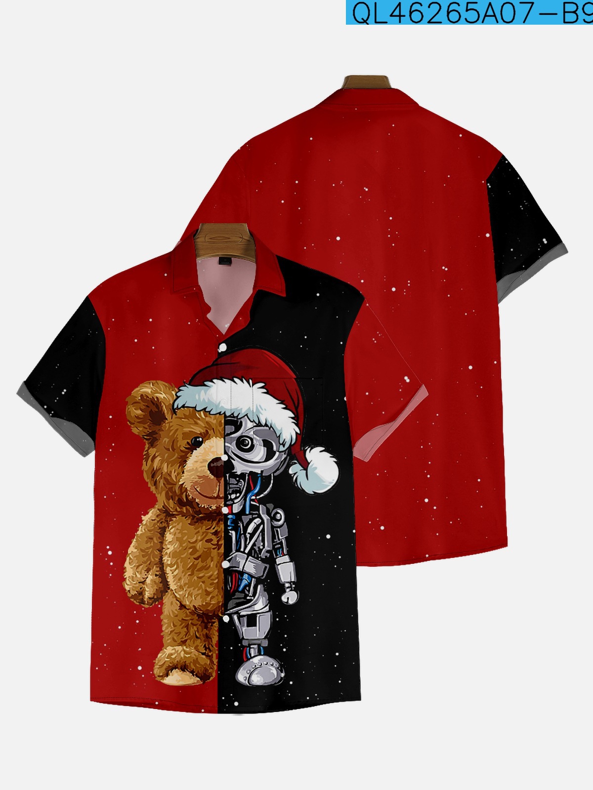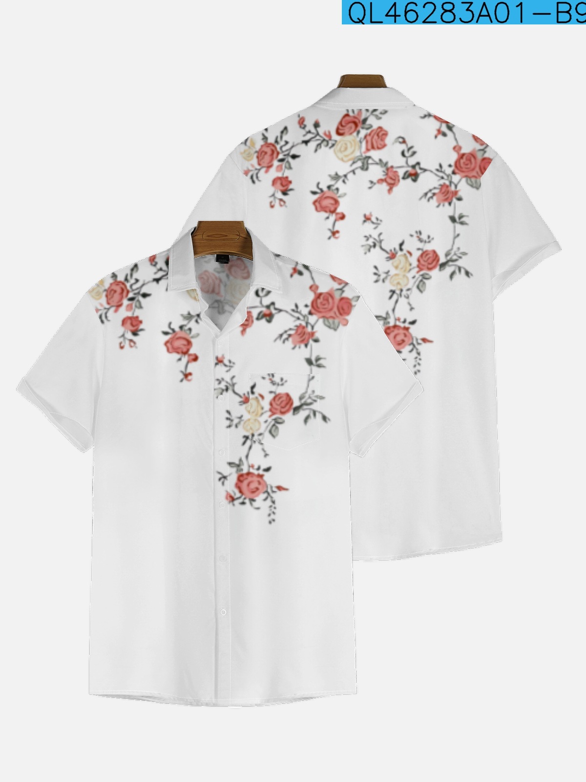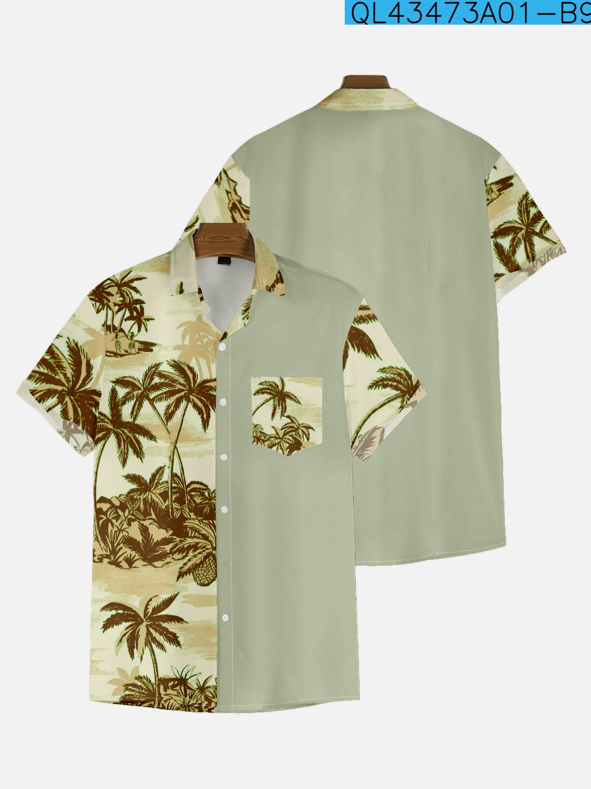 2022新型クロスボーダー大サイズシャツ12-15プリント男性のゆったりしたファッション半袖襟付きシャツ