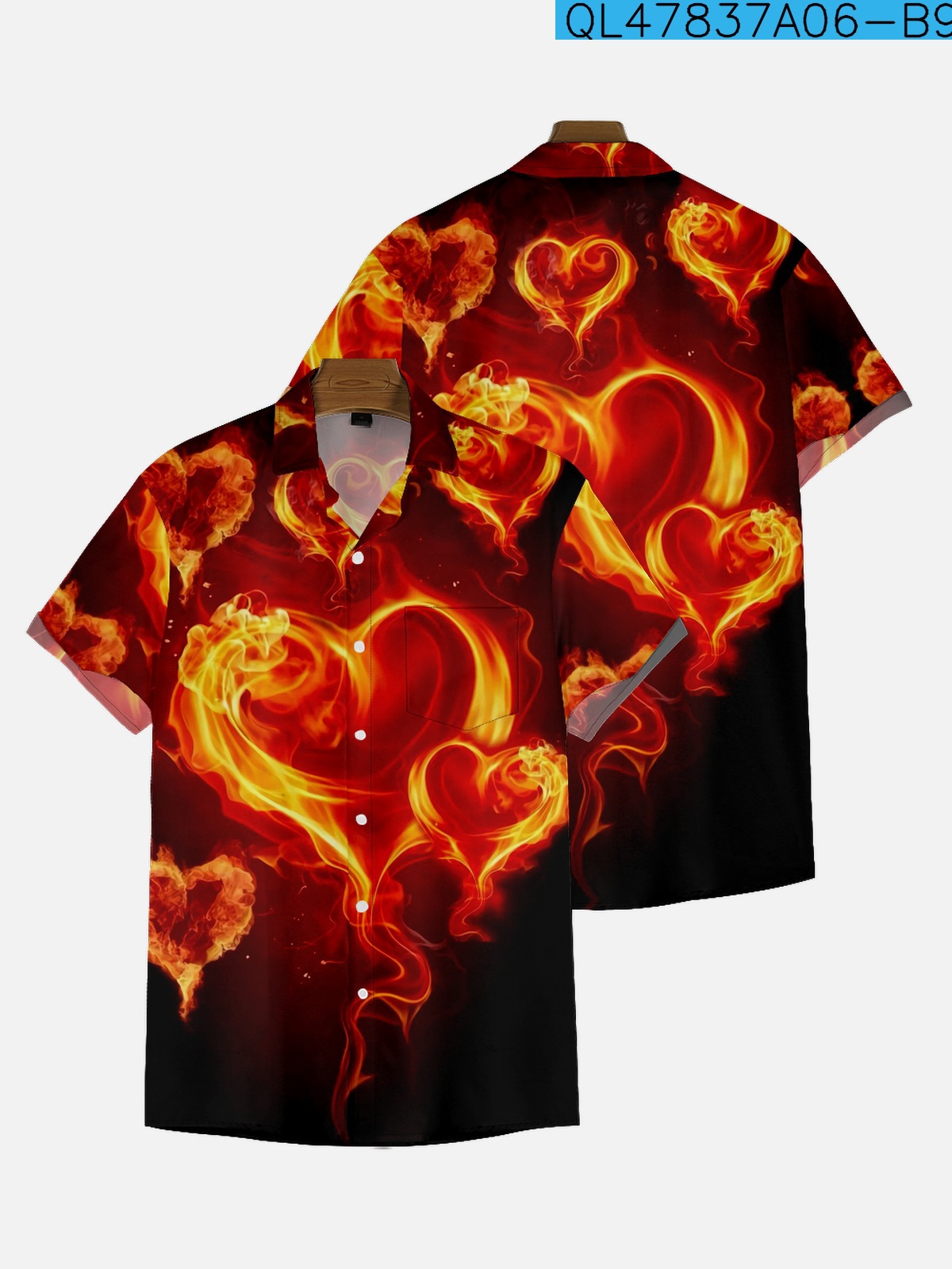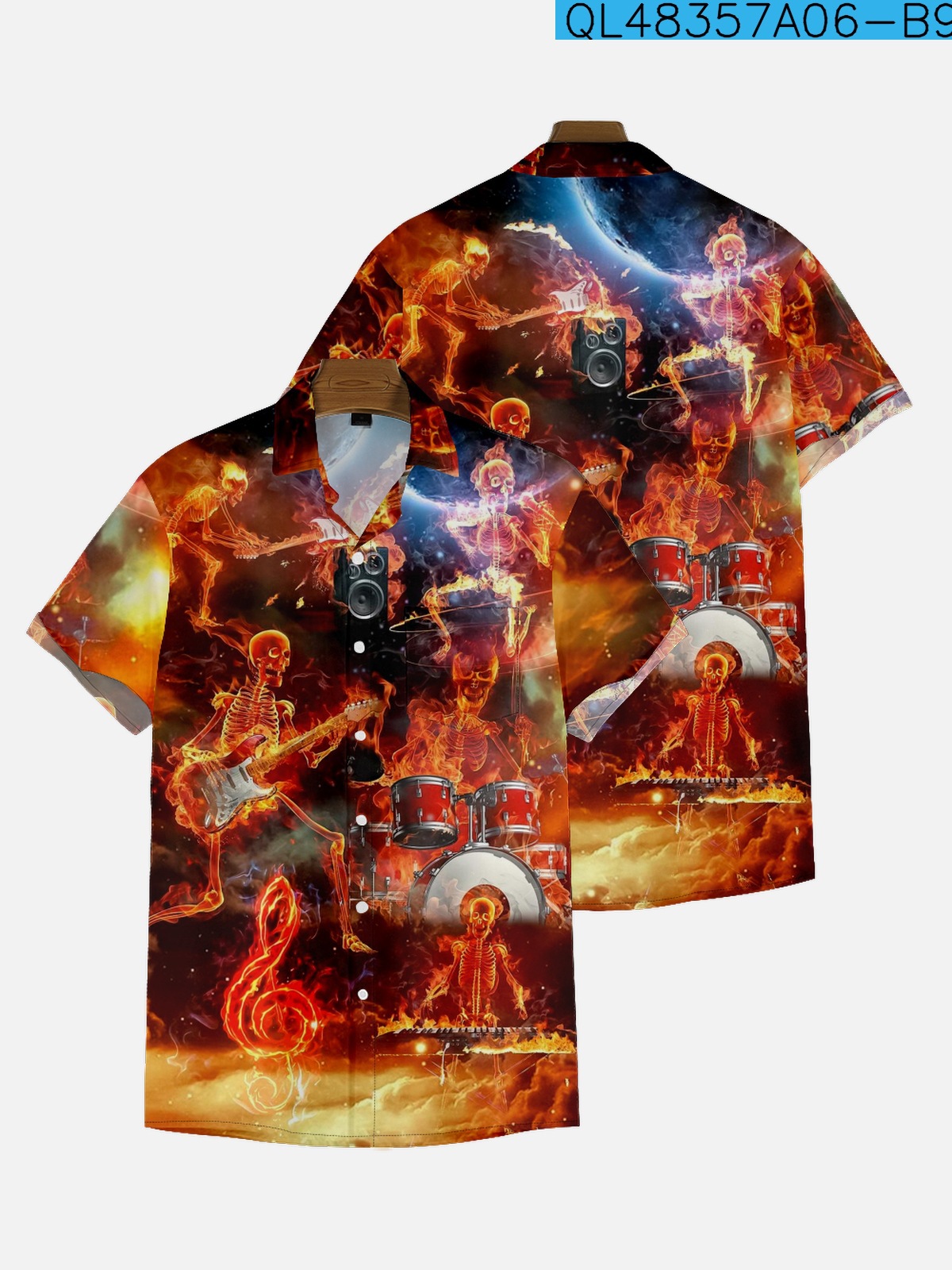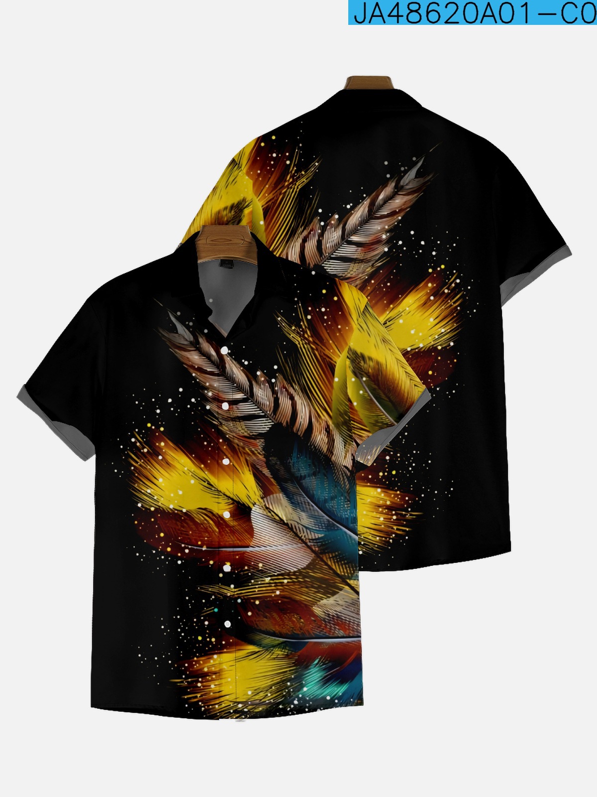 2022新型越境大サイズシャツ12-1創意プリント男性のゆったりしたファッション半袖襟付きシャツ