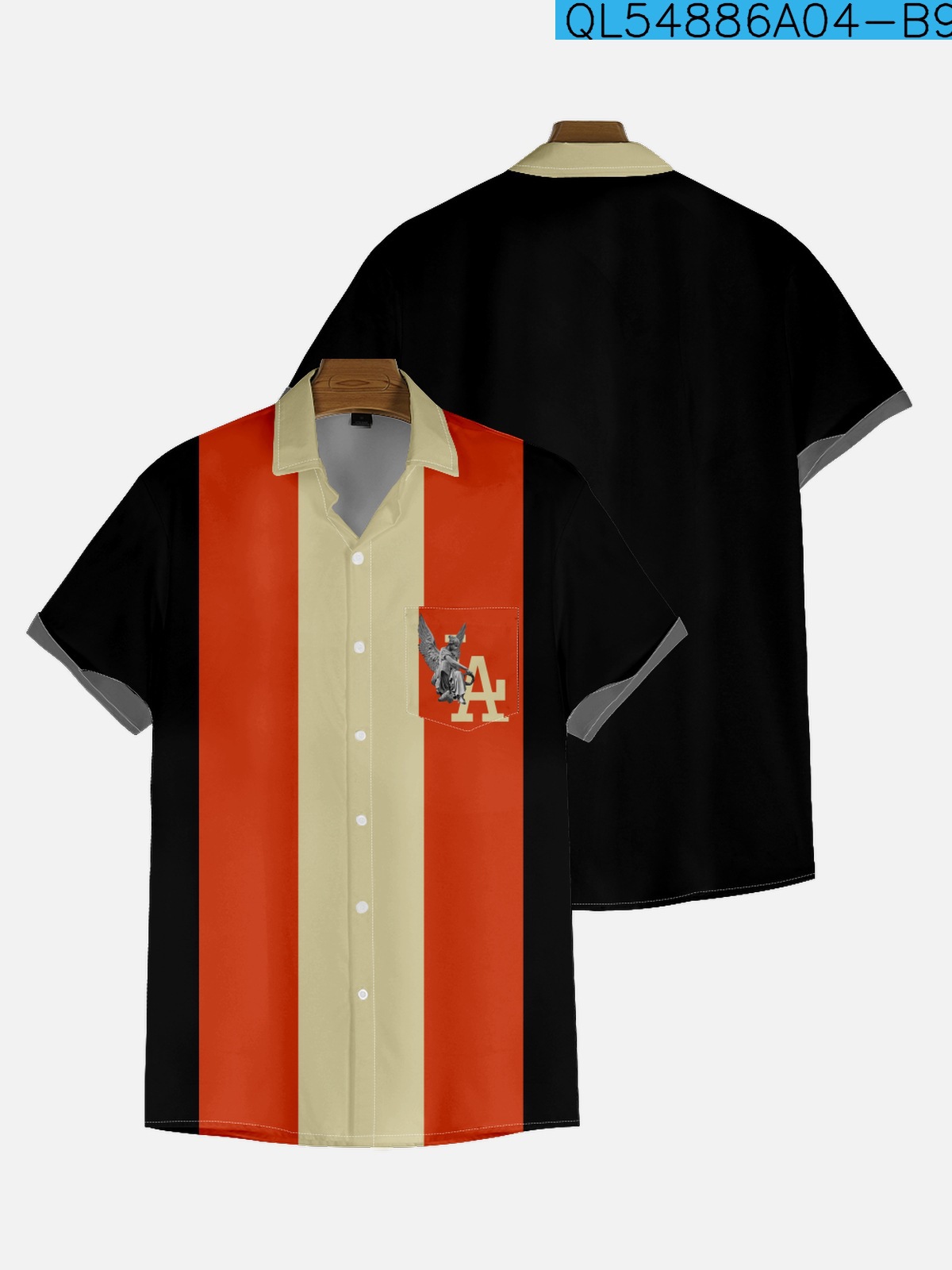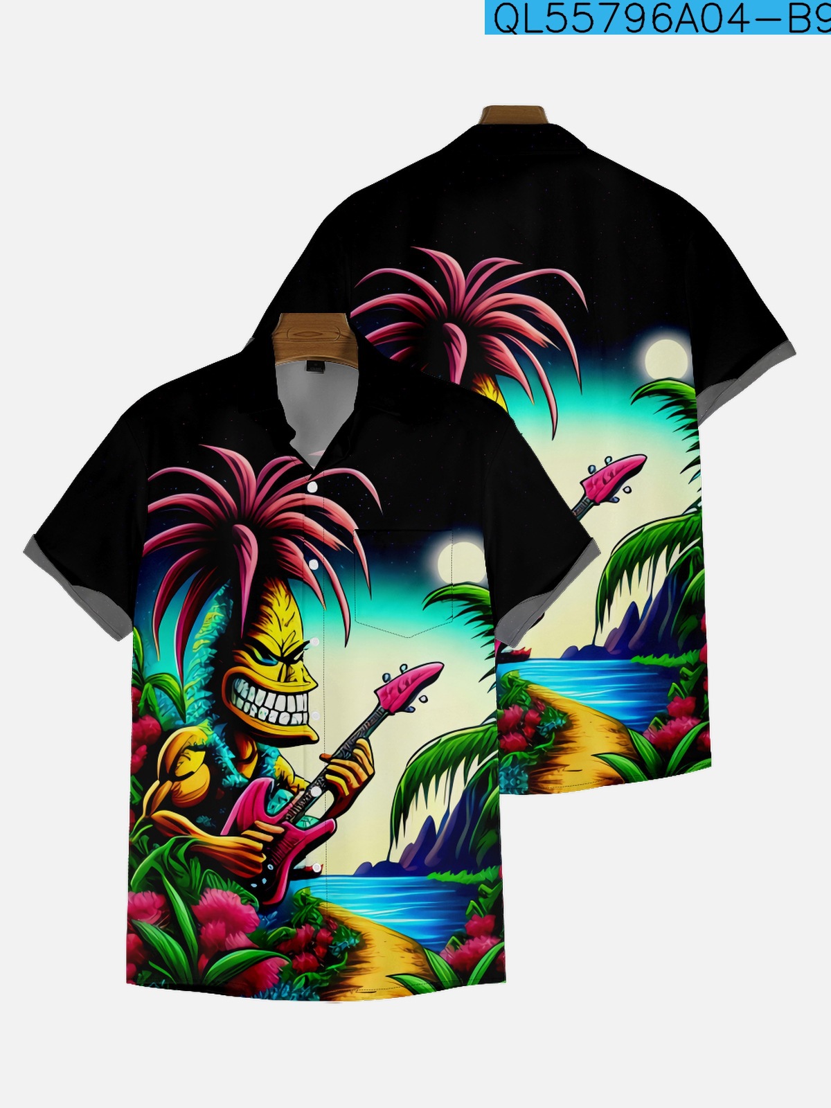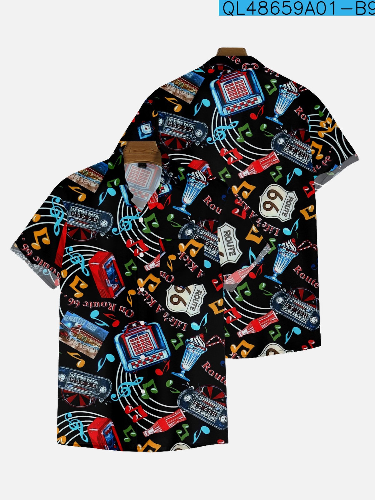 2022新型越境大サイズシャツ12-1創意プリント男性のゆったりしたファッション半袖襟付きシャツ