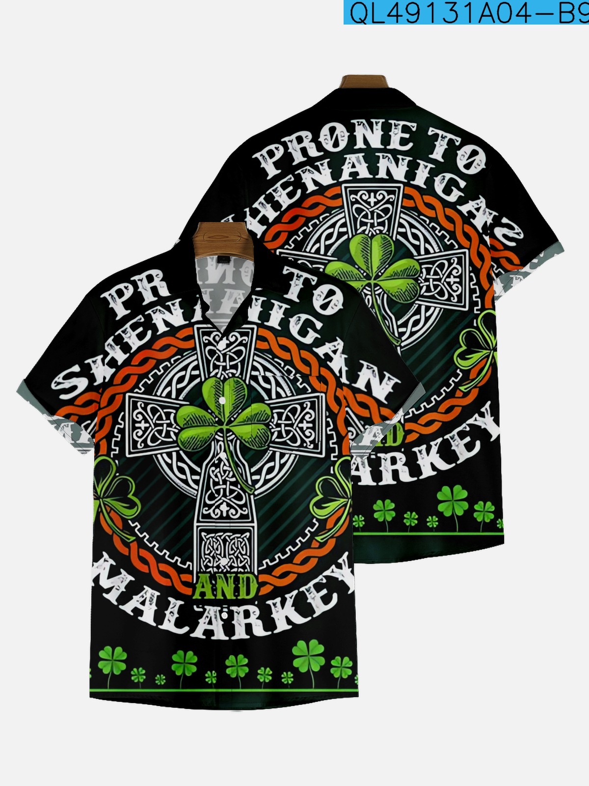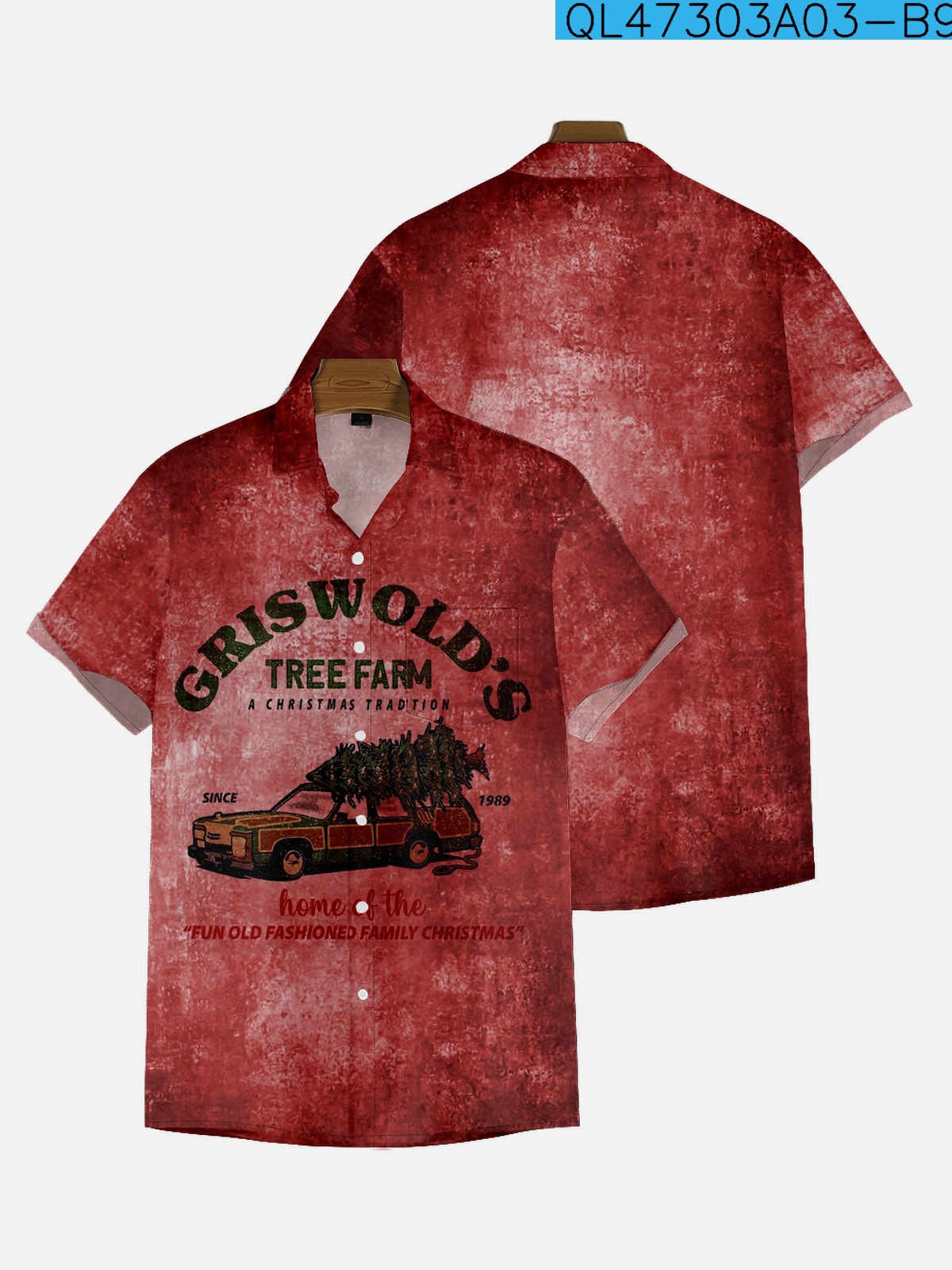 2022新型クロスボーダー大サイズシャツ12-19プリント男性のゆったりしたファッション半袖襟付きシャツ