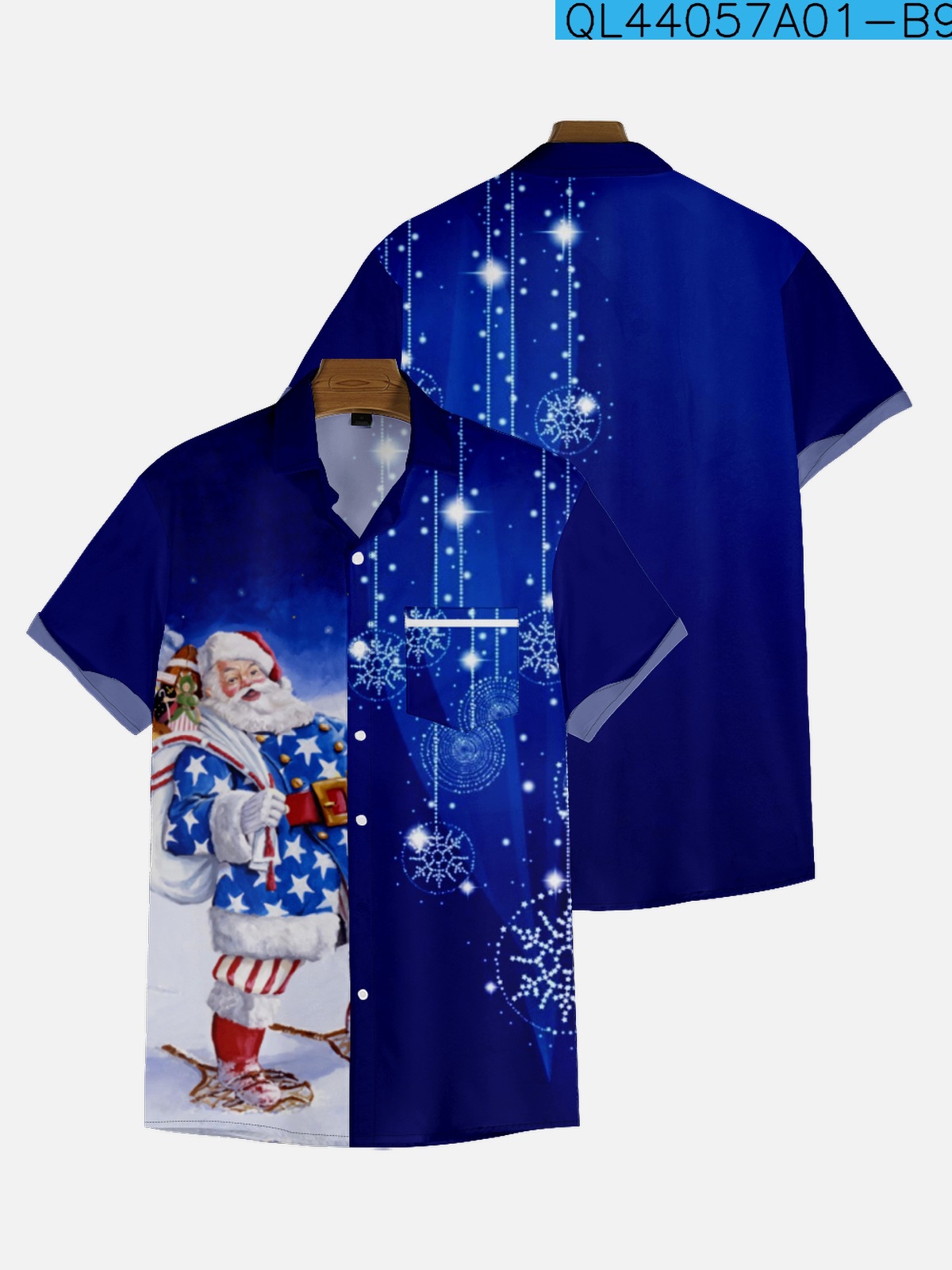 2023新型クロスボーダー大サイズシャツ5-25プリント男性のゆったりしたファッション半袖襟付きシャツ
