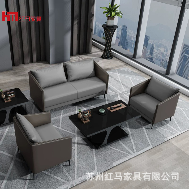 ビジネスオフィス商談受付小型西皮モダンシンプル受付3人掛けオフィスソファコーヒーテーブル組み合わせ
