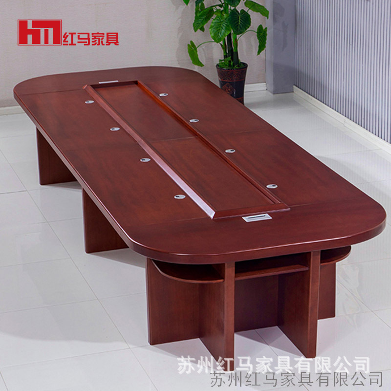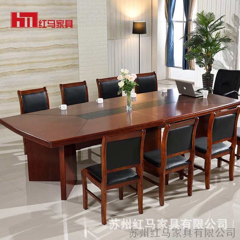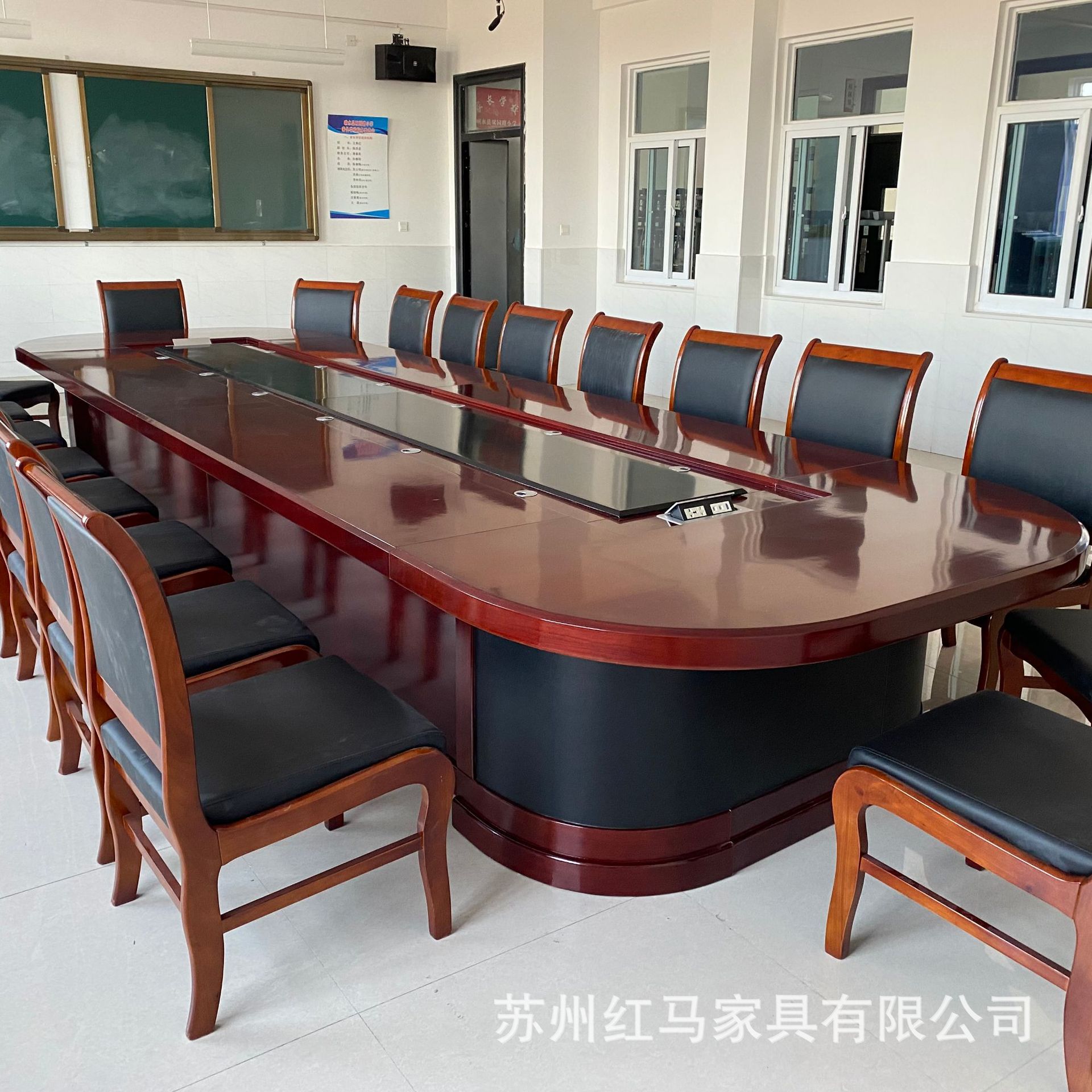 大型会議テーブル楕円形ペンキ実木皮会議室テーブルと椅子の組み合わせビジネス高級テーブル会議テーブル