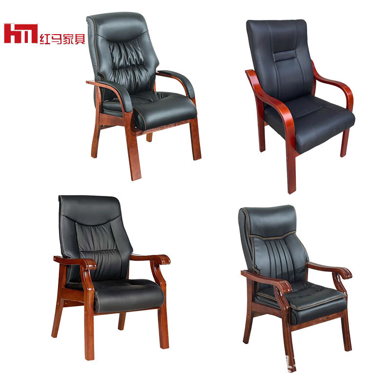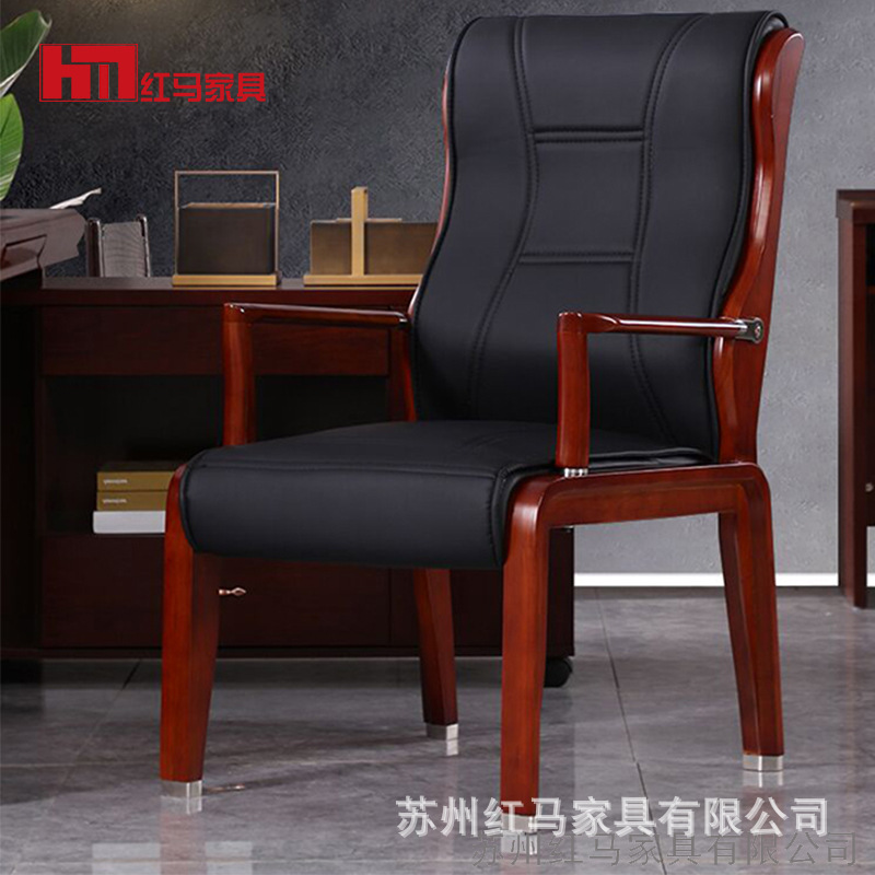 応接椅子オフィス会議椅子中国風の革の椅子革シート無垢材ペイント椅子工場直販