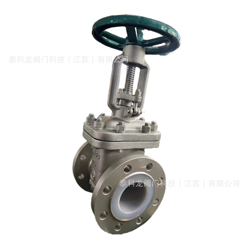 ステンレスゲートバルブ内ライニングptfe pfa ptfe耐食性酸アルカリ手動フランジ接続