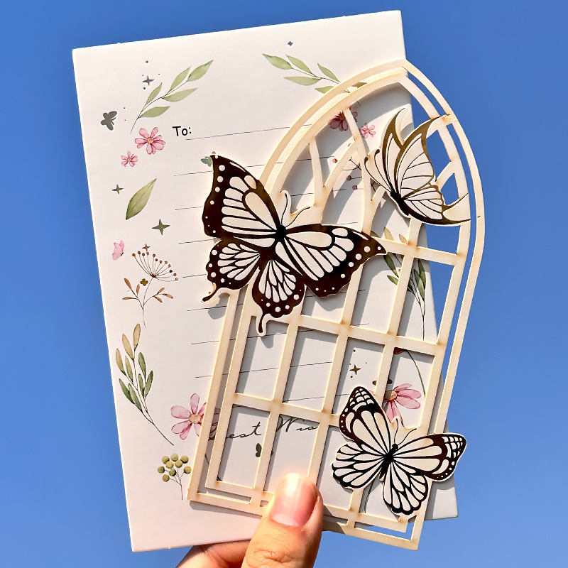 新商品のグリーティングカードの精巧なメッセージカードの夢蝶の花の風の封筒の絵葉書の少女の心の小さい清新な小さい二つ折りのカード