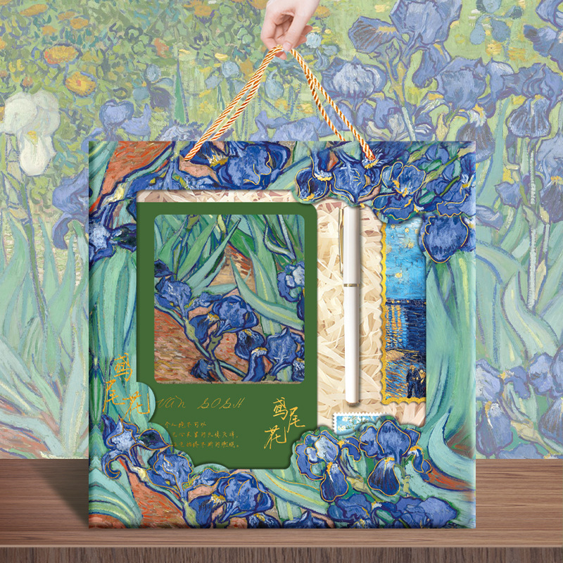 楽しいギフトボックスゴッホの夜の新しいアイリスの花がギフトボックスの文房具箱セットを持ってプレゼントする学生セット