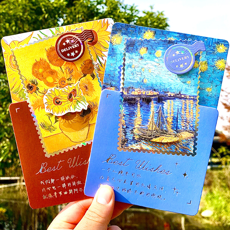 辰陽文化3d可立賀状ゴッホの話文芸誕生日賀状高級感星空油絵風祝福カード