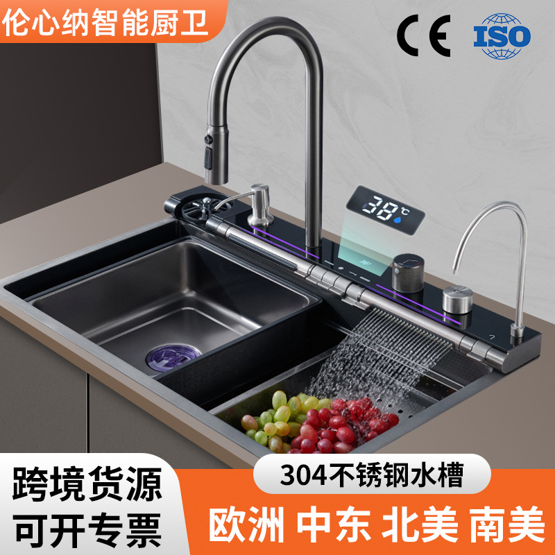 ステンレス大単槽厨房多機能水槽黒金剛ナノ皿洗い池単槽ネット赤階段洗濯盆