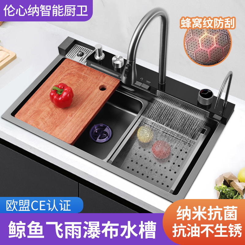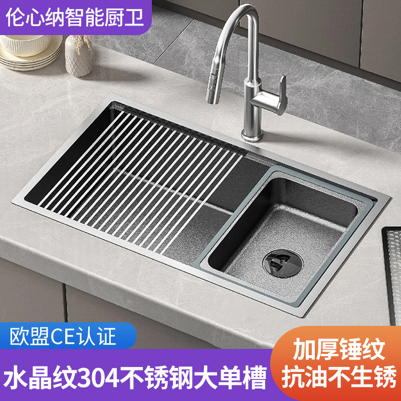 ナノ水晶紋厨房水槽SUS304ステンレス大単槽多機能抗菌洗面器台下盆