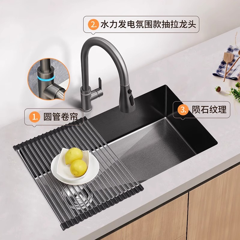 ナノブラック金剛水槽大単槽厨房304ステンレス製手作業で野菜を洗う洗面器の洗面台の下の家庭用