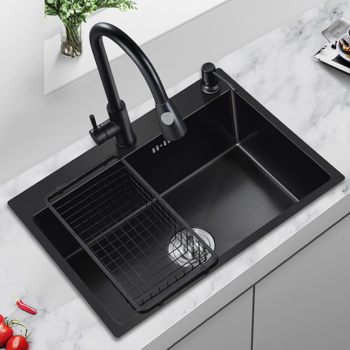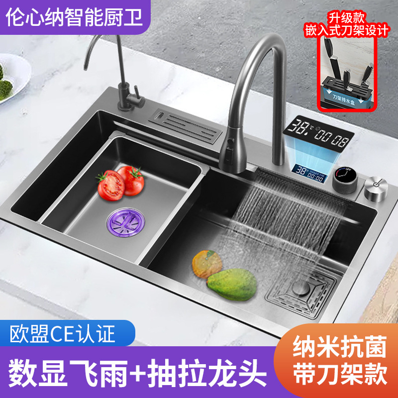 電気商代代台所水槽黒金剛ナノ手作り大単槽ステンレス蛇口洗面器セット