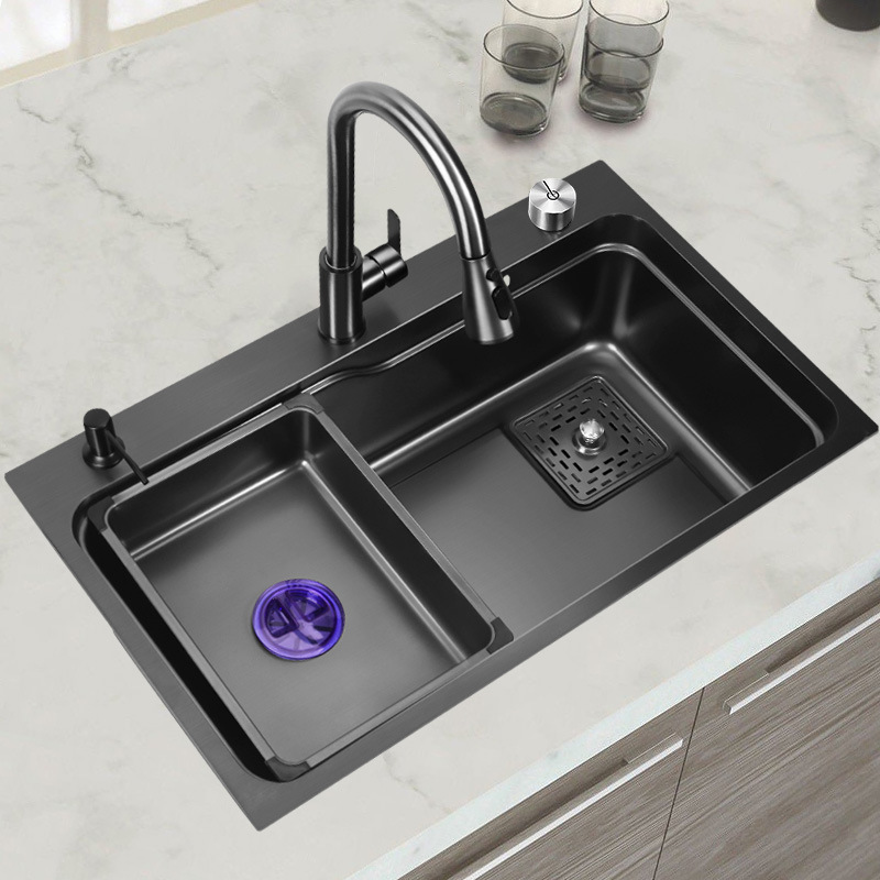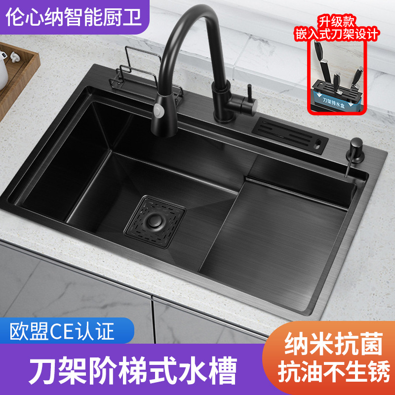 ナノ黒ステンレス水槽大単槽圧筋多機能カップ洗浄器キッチン台下洗浄洗面器手作業で厚くする