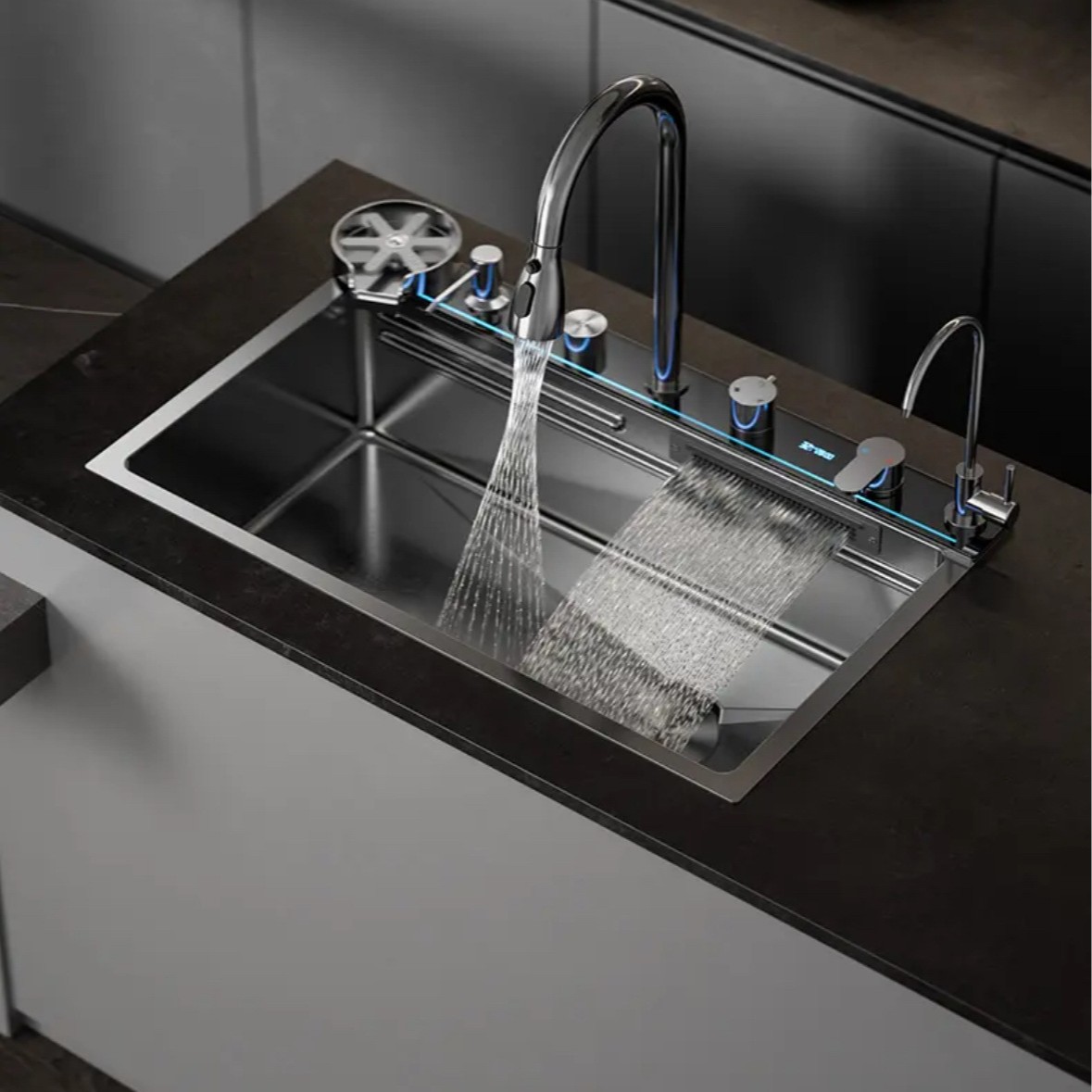 ナノステンレスキッチンシンクの手作業で厚い皿洗い池の下の野菜鉢の飛雨大滝のシングルタンクの現物
