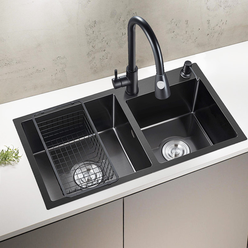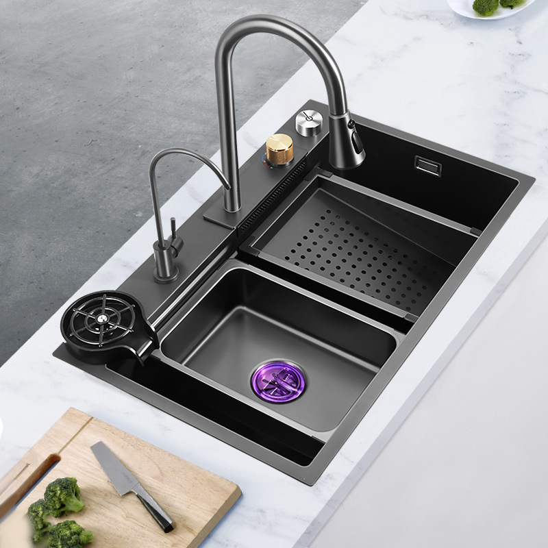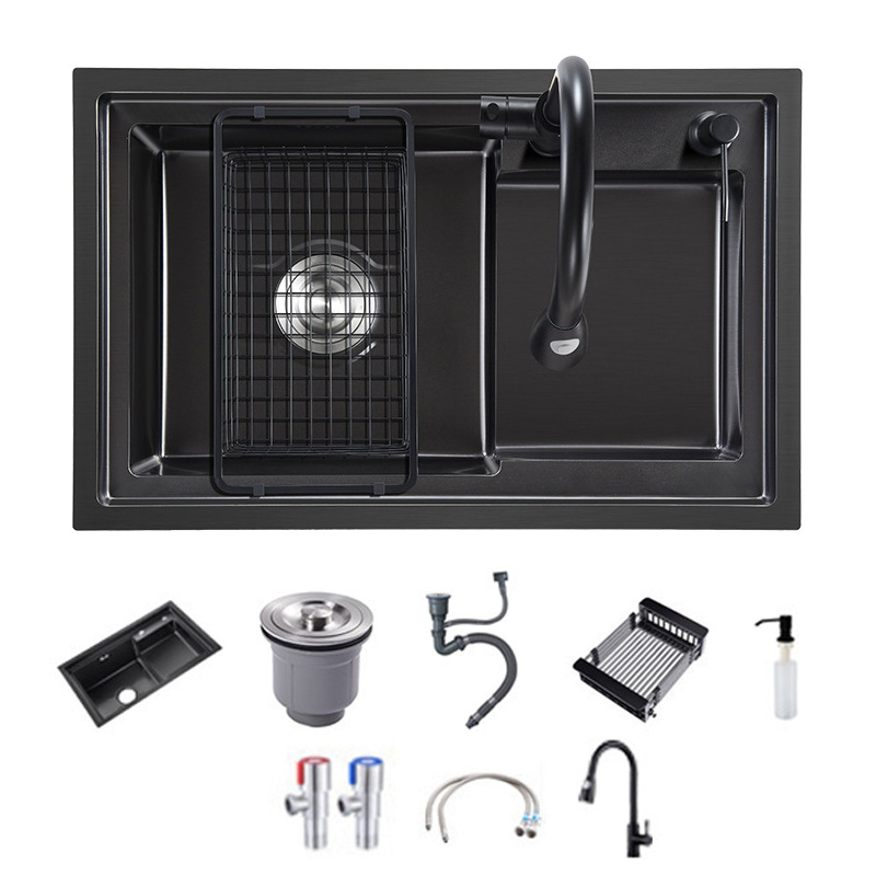 国境を越えた供給キッチン大型シングルスロットステンレス鋼はしご手作りシンク多機能ブラックナノシンクメーカー