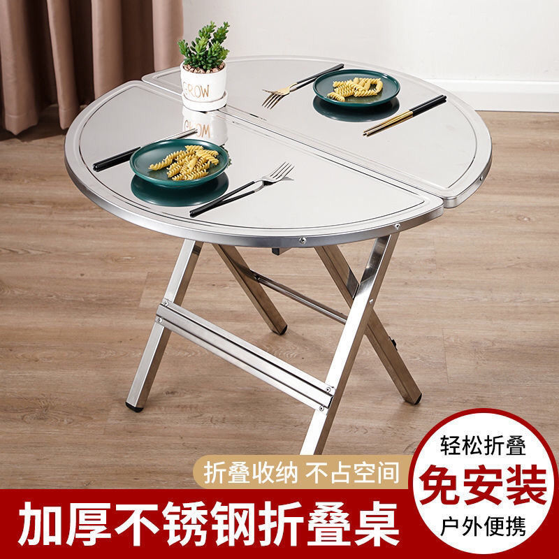 ステンレス鋼ポータブル折りたたみ式円卓小さな正方形テーブルダイニングテーブル家庭用正方形屋外円形テーブル