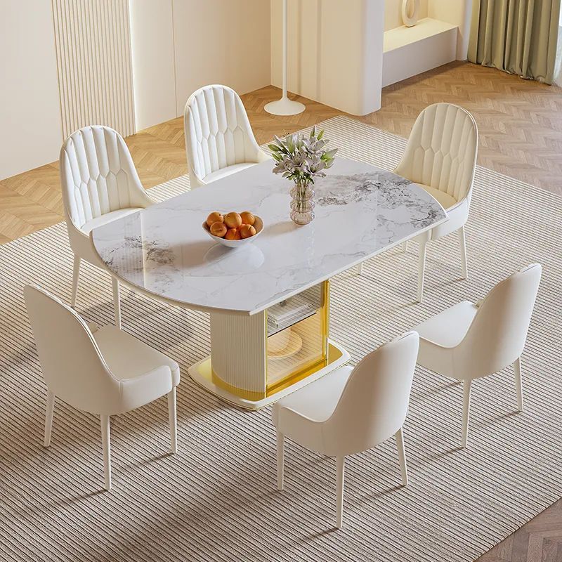 クリーム風実木岩板食卓白色伸縮可能周囲両用貯蔵テーブル椅子現代シンプル多機能テーブル