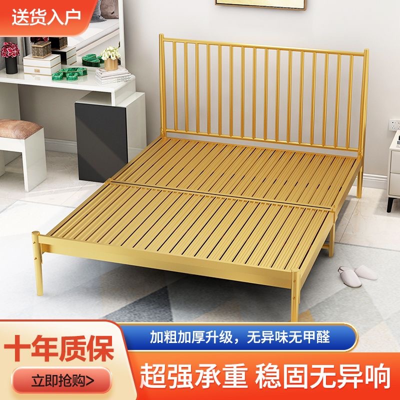 シンプルで現代的なヨーロッパ式の金色のネット赤鉄製ベッドは、鉄ベッドを厚くして1.2メートル1.5メートルのシングル二人の鉄棚ベッドを厚くした