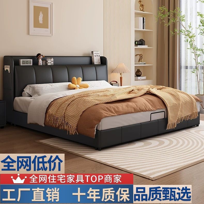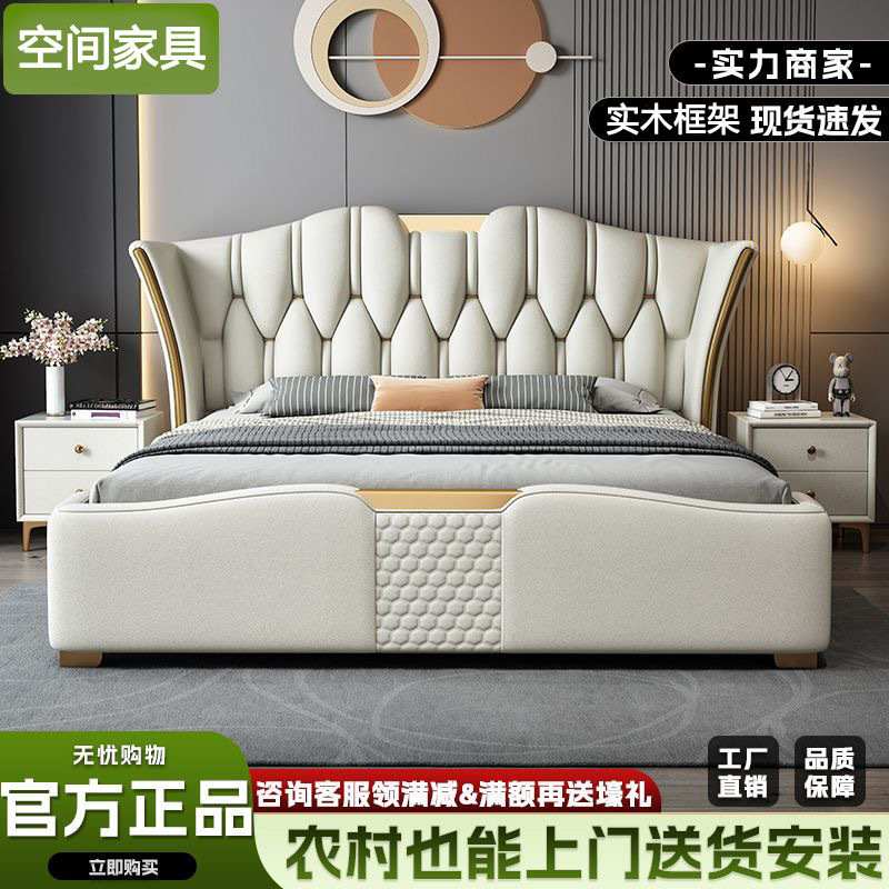 イタリア式軽贅沢本皮ベッド1.8メートルツインベッド1.5メートル家庭用シンプルな主寝ベッド収納ベッド高級結婚ベッド