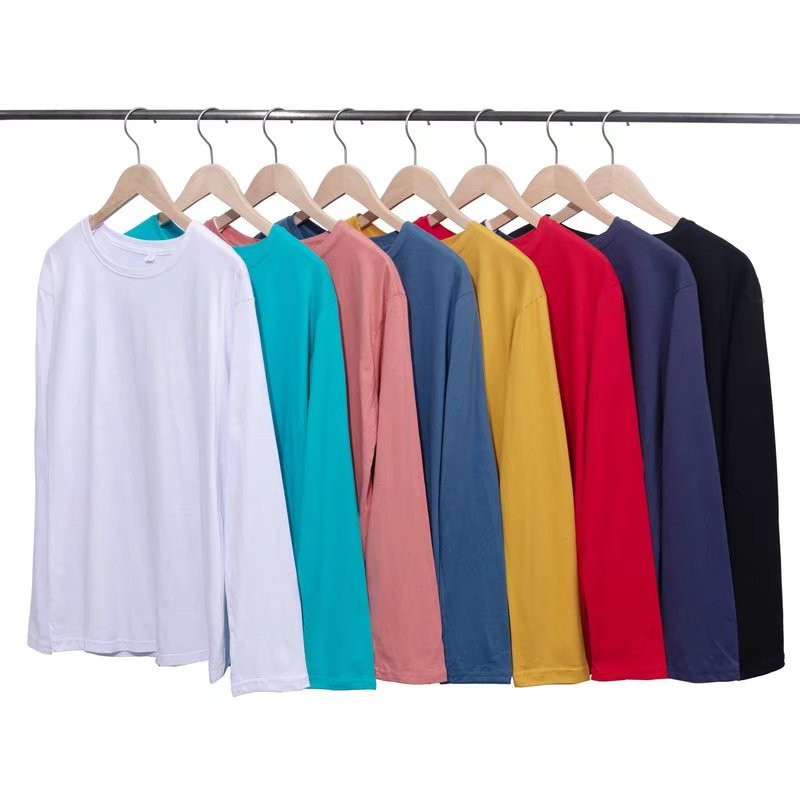 純色の純綿の長袖tシャツの男性は底のシャツを掛けてゆったりしています。