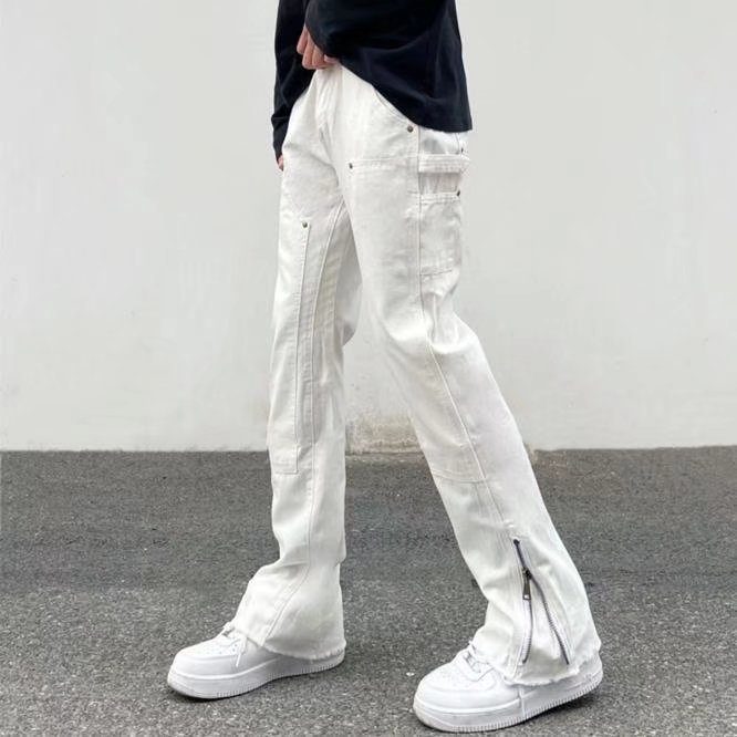欧米のストレートの小さいラッパのズボンの男女のしわのカジュアルなズボンの風は街のゆったりしているアメリカの工装のズボンの潮男を揚げます。