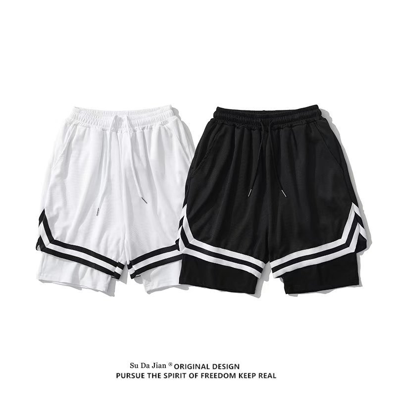 ストライプ五分半ズボン男性夏ストレートカジュアルスポーツビーチパンツ潮牌衛ズボン中ズボン男性外着
