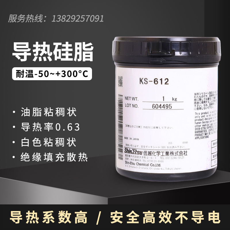 日本信越KS-612放熱ペースト耐熱封止ゴム放熱油cpu耐高温シリコンオイル熱伝導シリコングリース1kg
