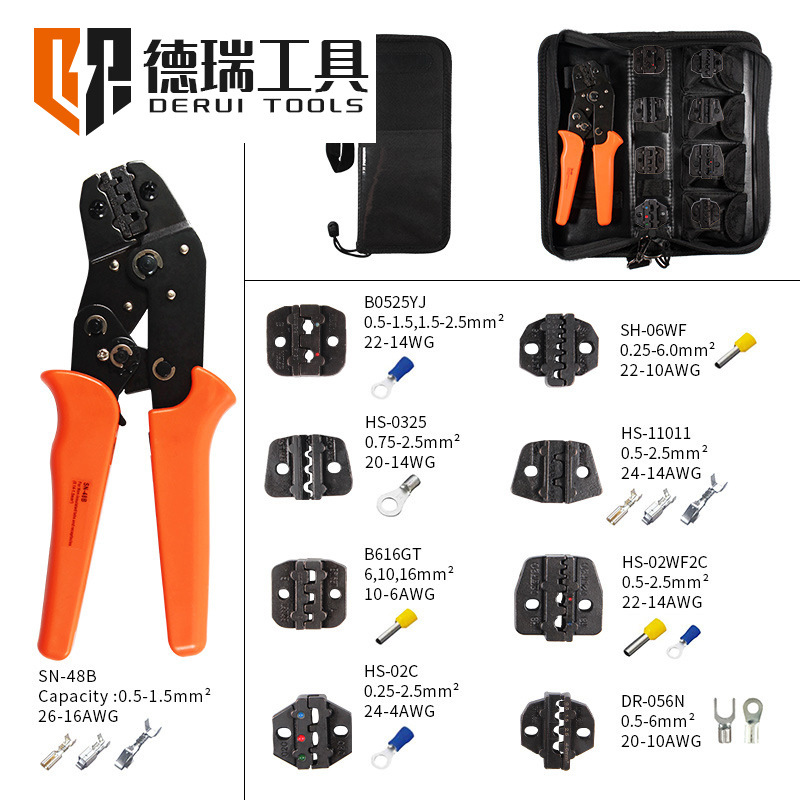 源メーカー徳瑞工具SN-48B携帯型多挟み口オックスフォード端子圧線鉗子セット