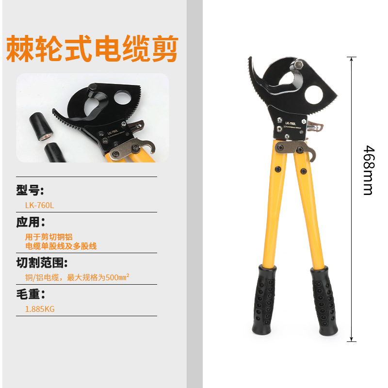 徳瑞工具LK-760Lドイツ式省力型ラチェット式ケーブルカッター手動ケーブルクランプ