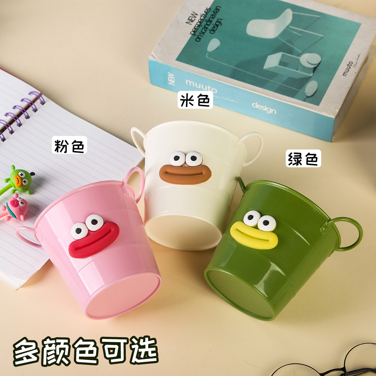 プラスチック面白い双耳バケツペンホルダー大容量学生デスクトップオフィス収納金属学習デスク装飾品