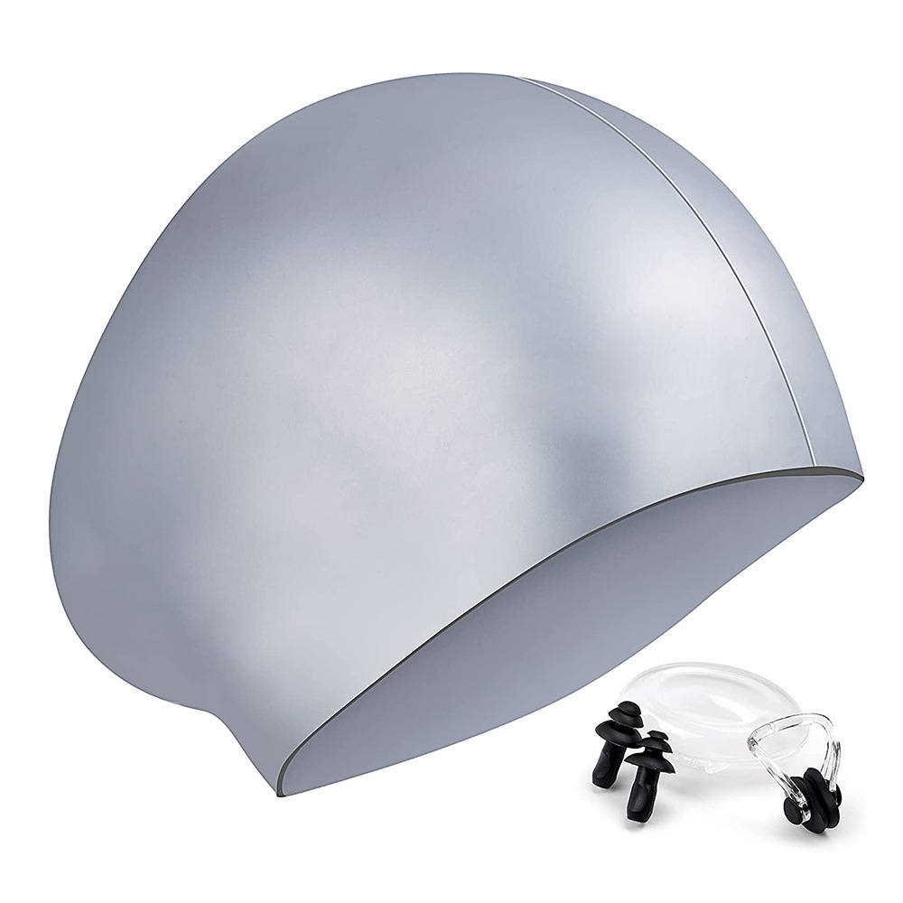 国境を越えた新しいソリッドカラーの大人用スイミングキャップ防水弾性シリコン水泳競技トレーニング拡大男性と女性の耳栓
